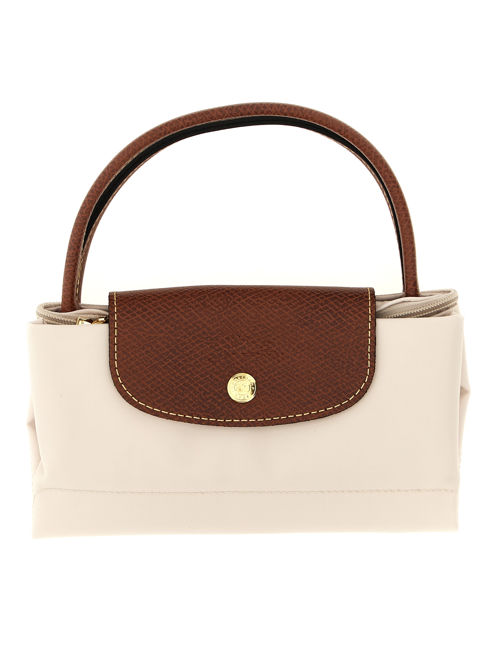 ‘Le Pliage Original S’ foldable nylon canvas handbag, top zip closure, double fixed leather handle, leather flap with button closure and embossed logo.