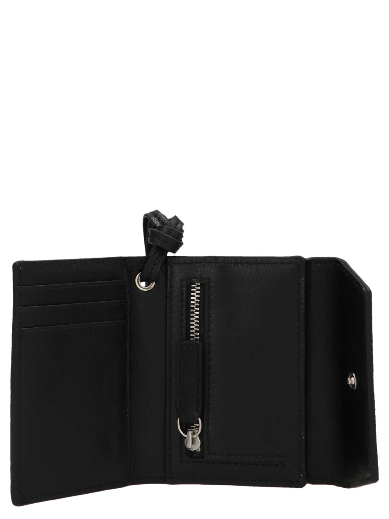 ‘Le Porte Jacquemus’ smooth leather wallet, flap closure with snap button and metal lettering logo, removable knotted shoulder strap.