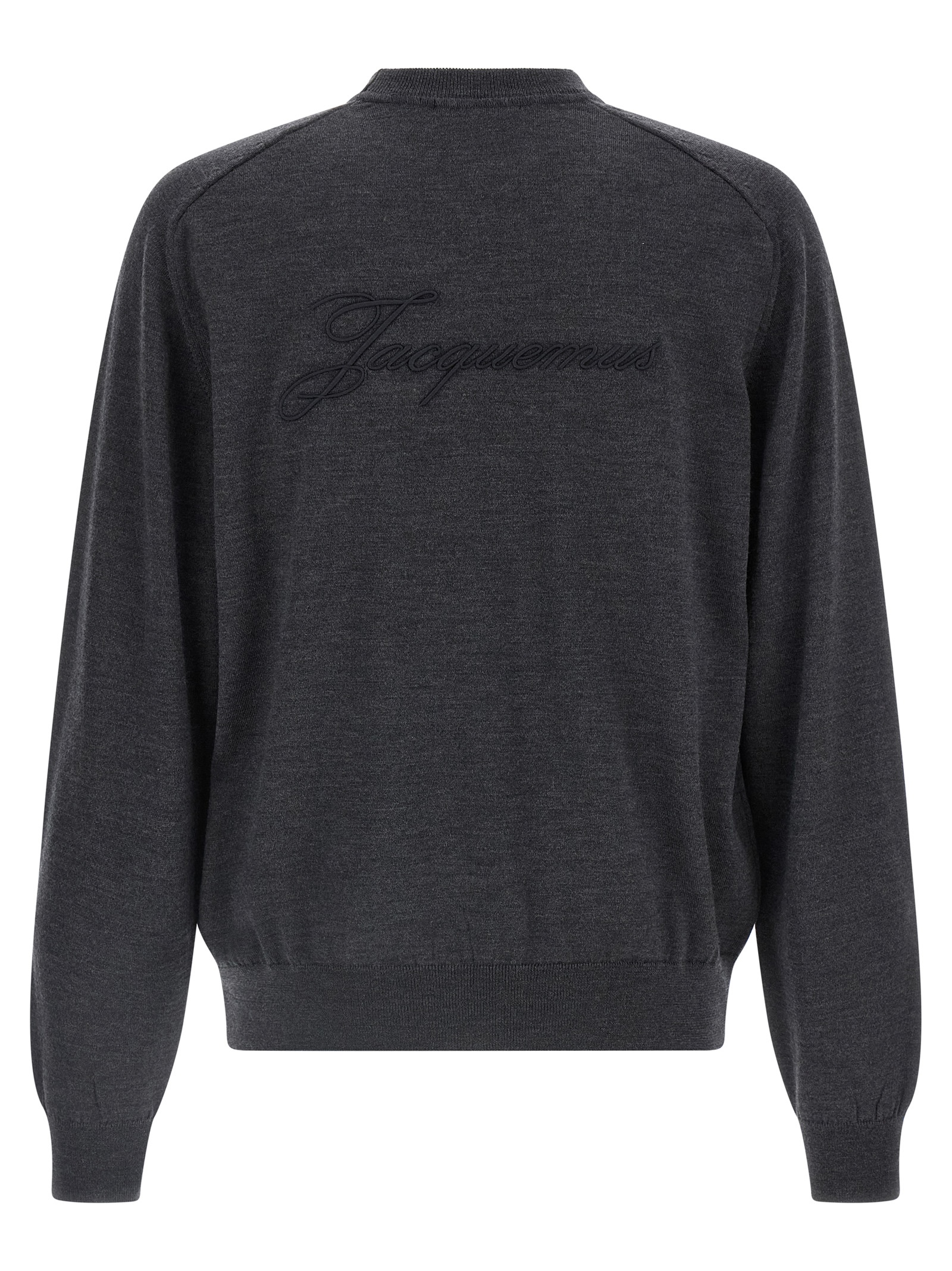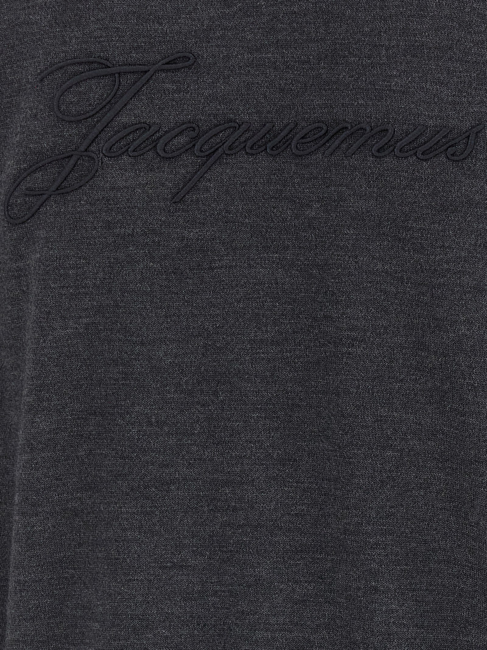 Le Sweater Brodé’ merino wool sweater with tone-on-tone embroidered logo on the back, crewneck with overlock stitching, long cuffed sleeves and dropped shoulders.