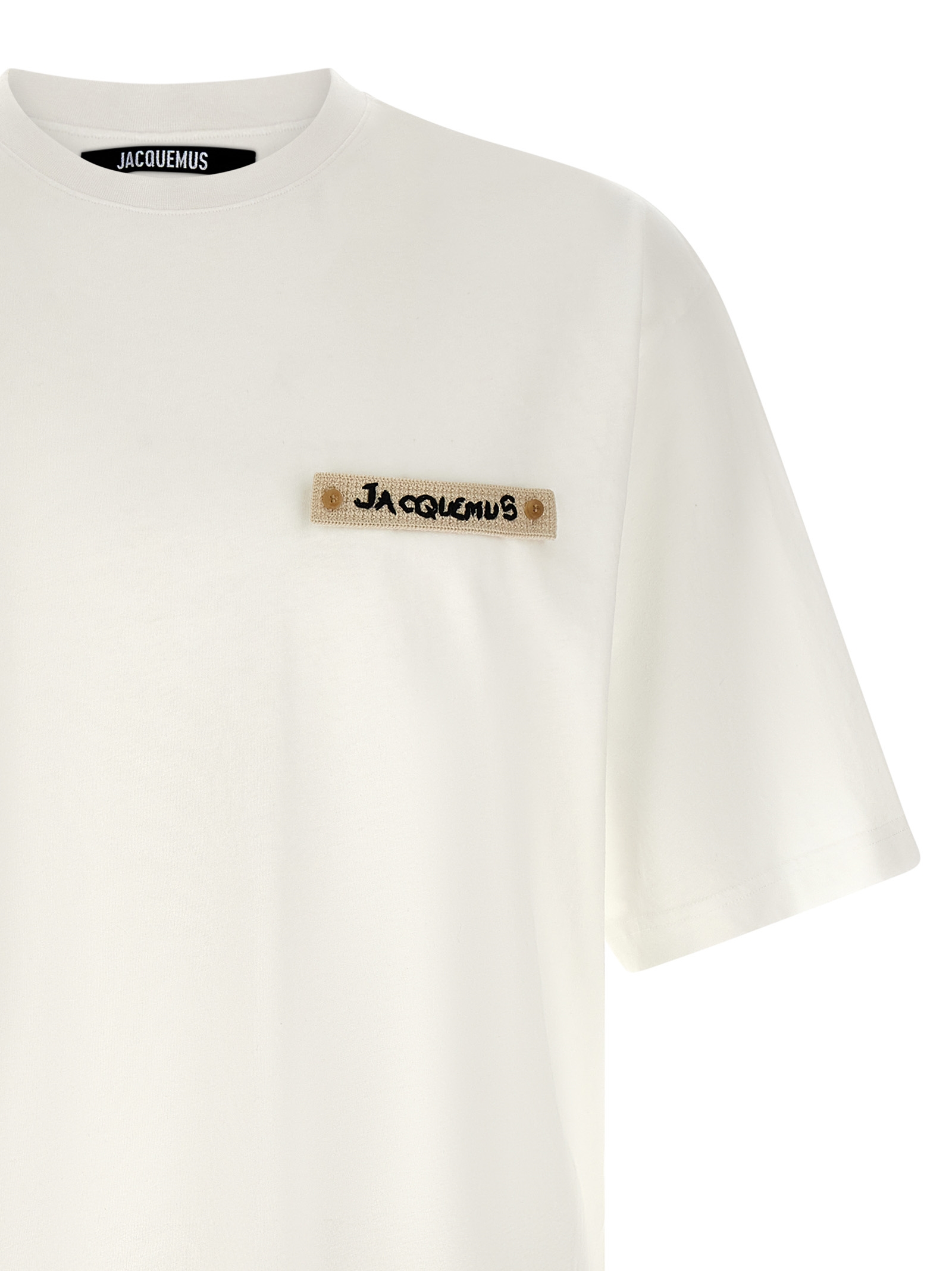 ‘Le T-shirt Plage’ cotton and hemp blend T-shirt, removable crochet logo patch detail on the front, crew neck, short sleeves with dropped shoulders.