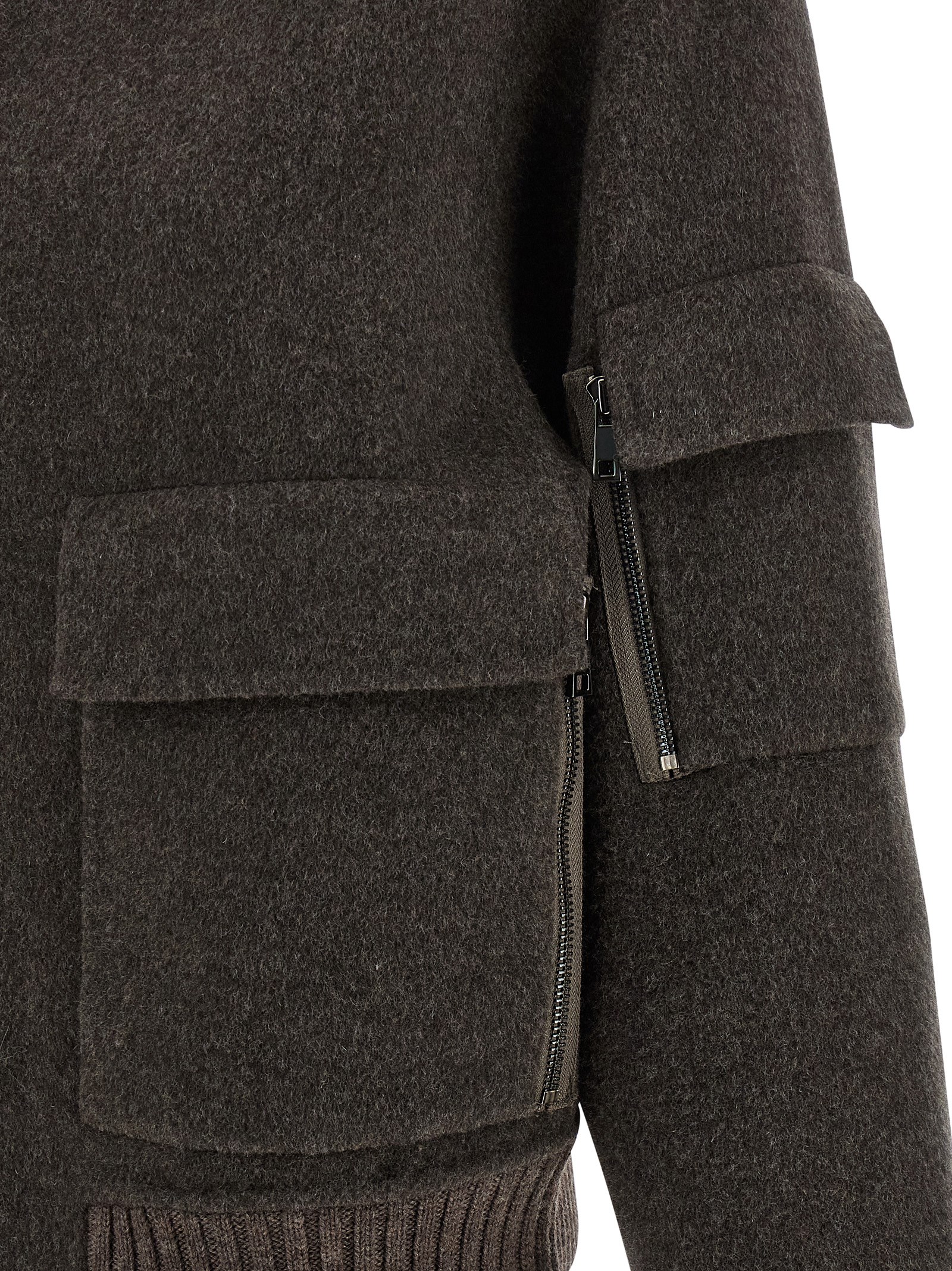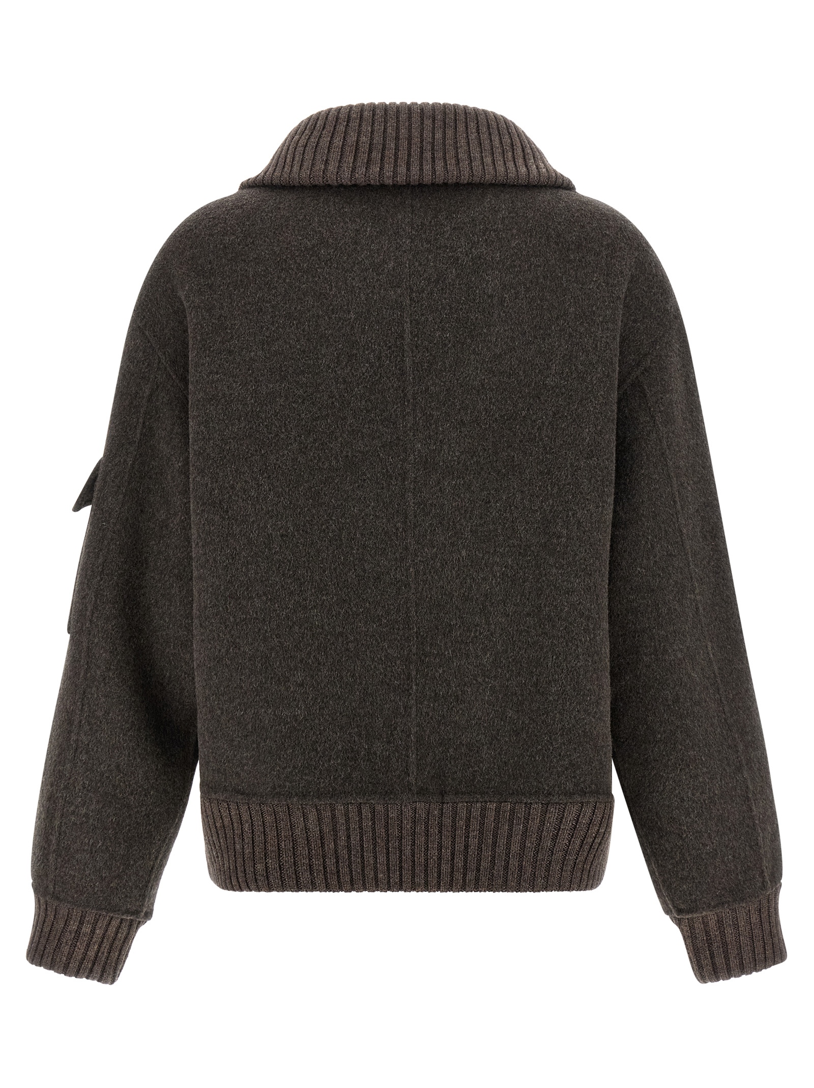 ‘Leak25’ double heavy wool bomber jacket with ribbed stretch knit details, foldable high neck, front zip closure, pockets, long sleeves with cuffs and dropped shoulder, unlined.