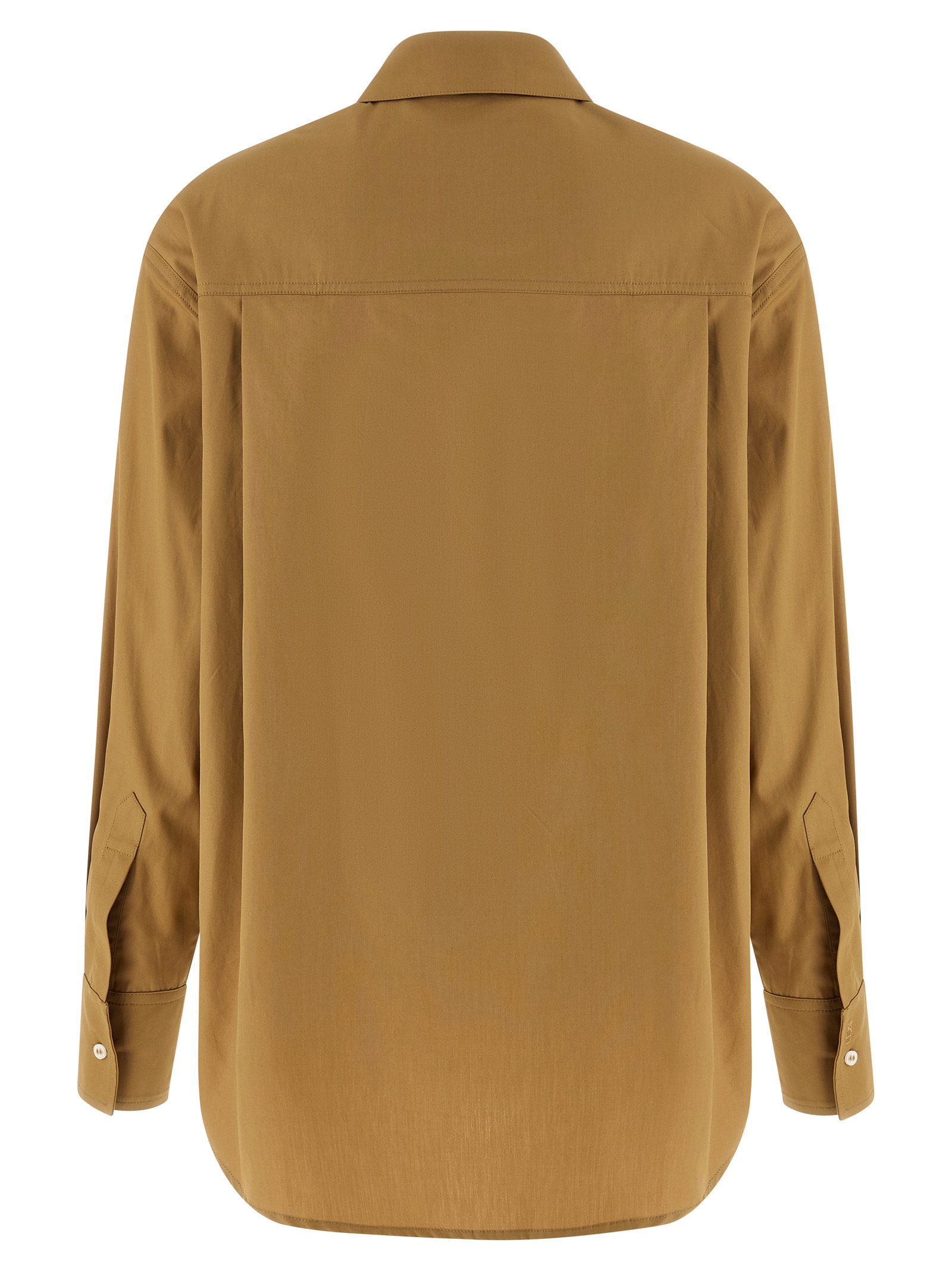 ‘Lee’ cotton poplin shirt, small pocket with tone-on-tone embroidered logo, front button closure, long sleeves with cuffs and dropped shoulder, side slits, asymmetrical rounded hem.