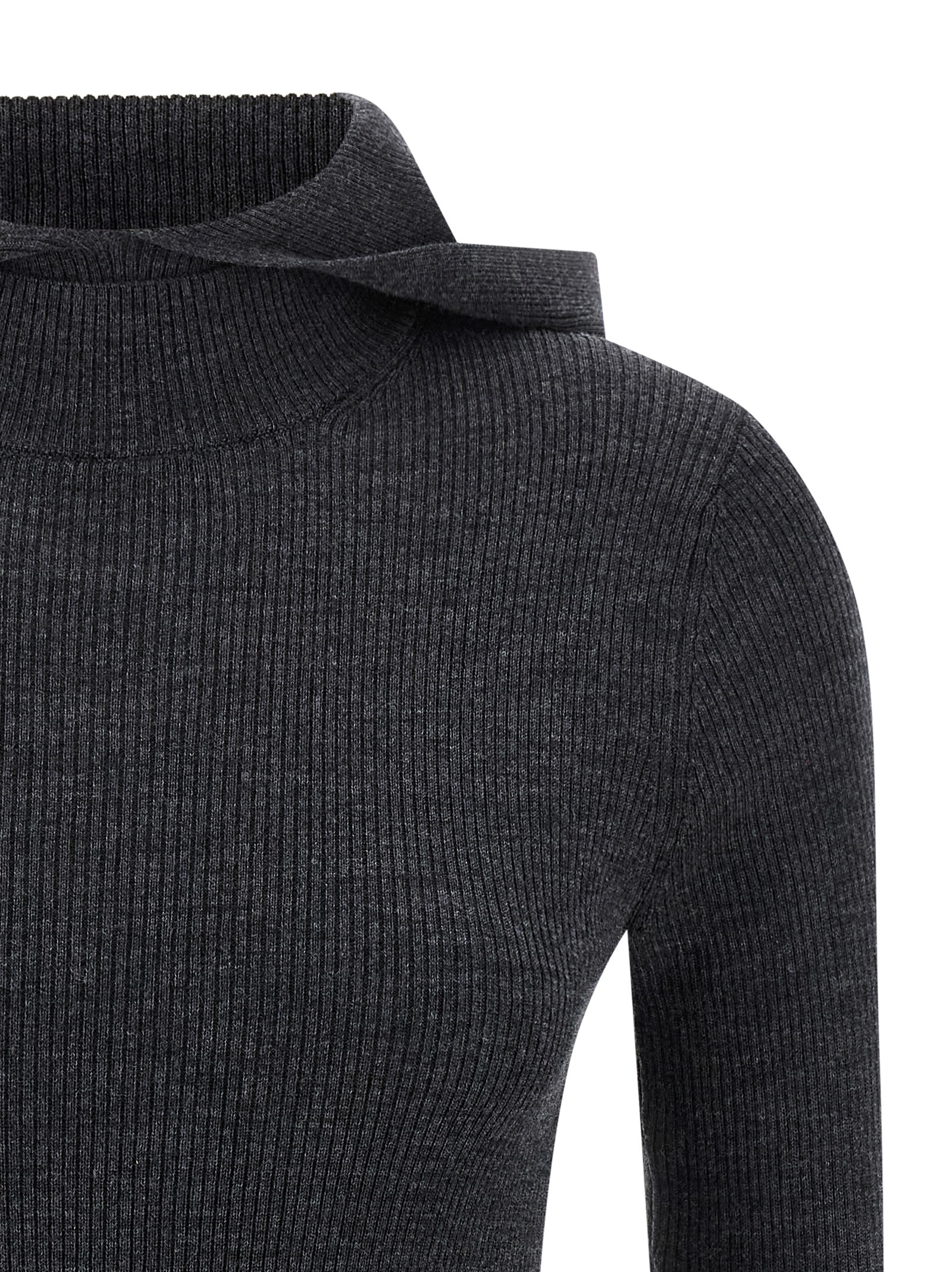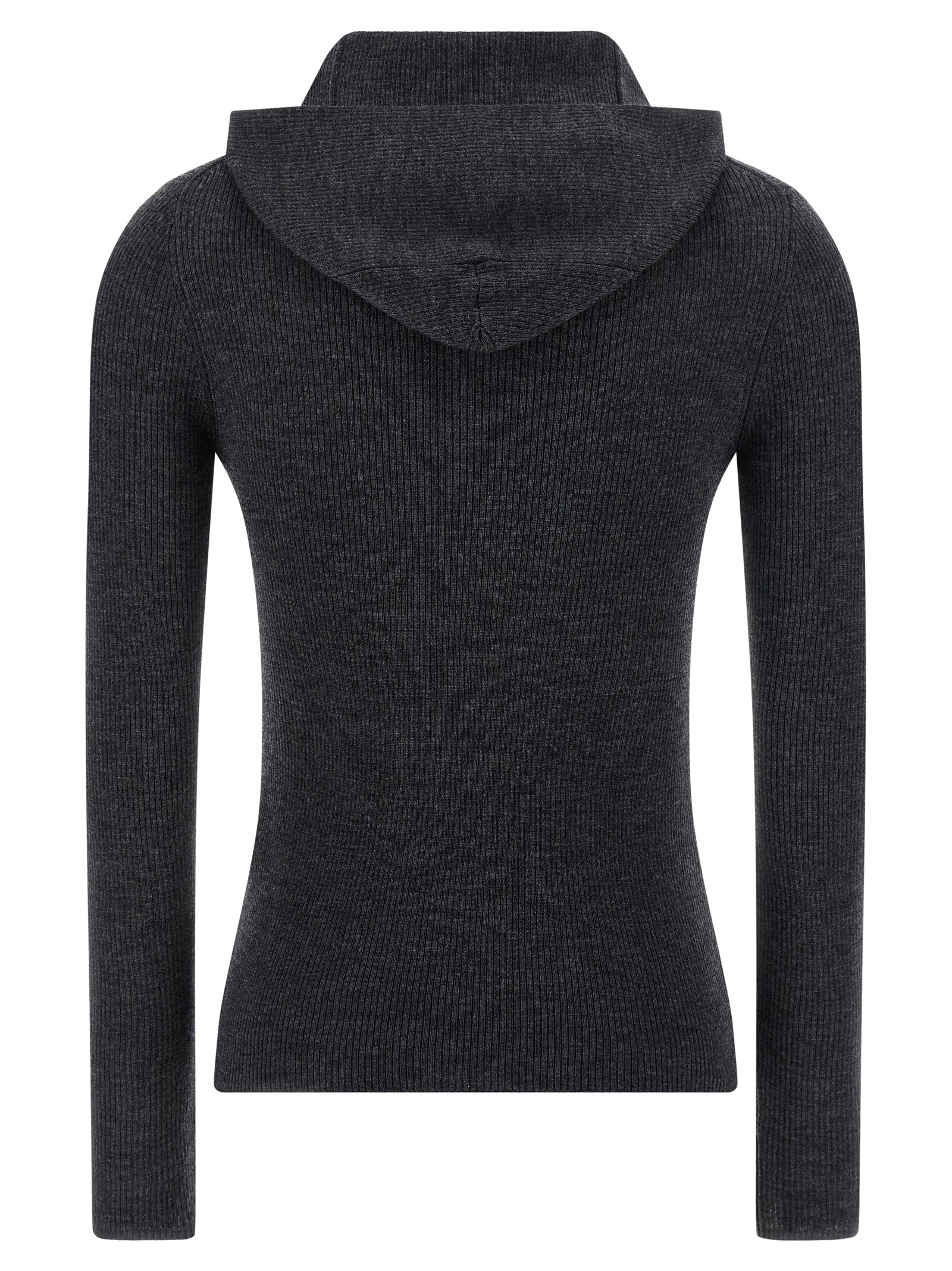 ‘Leila25’ ribbed stretch wool hooded sweater with long sleeves.