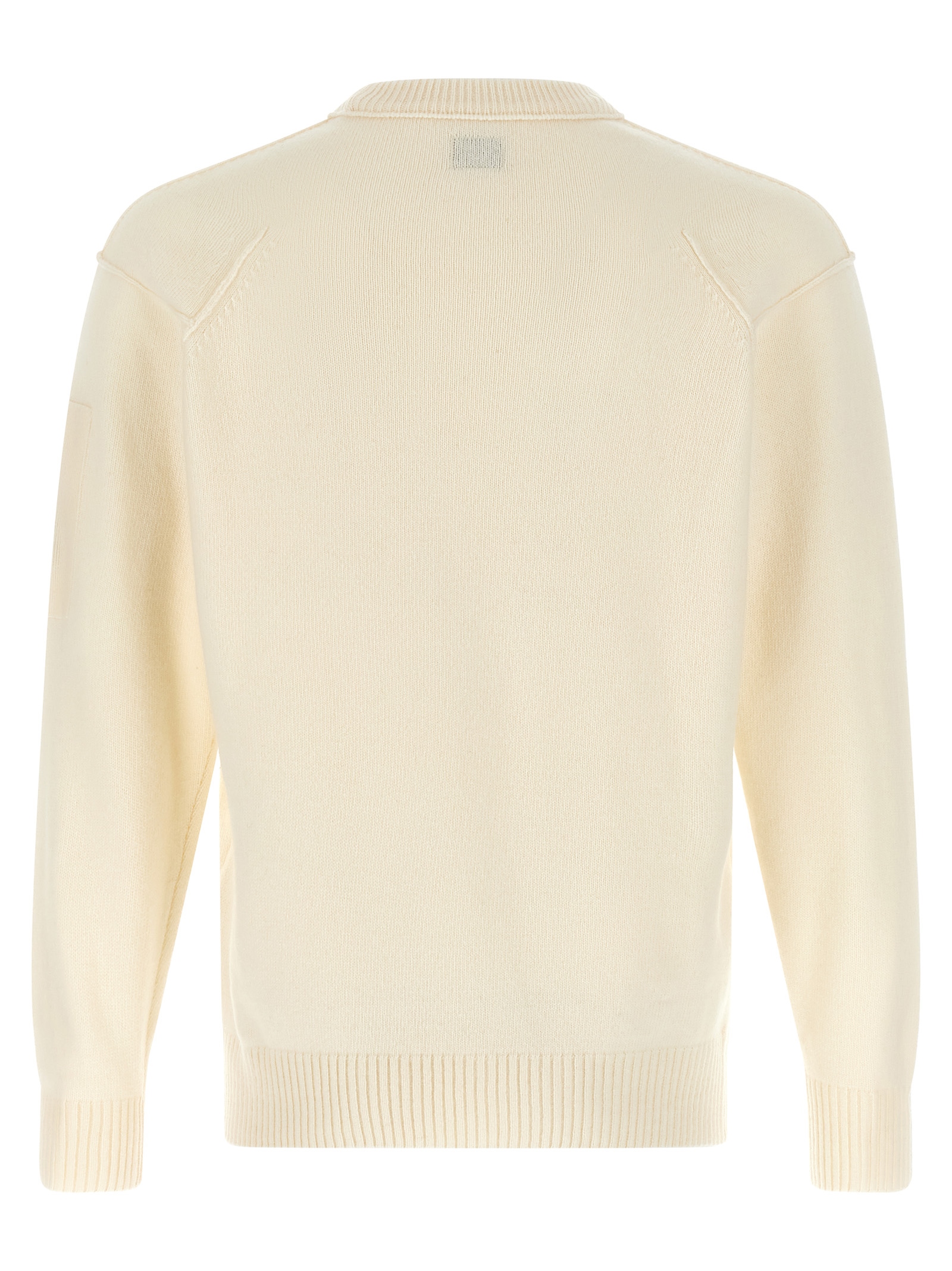 Wool sweater, with contrast stitching on the armholes, crew neck, long sleeves with cuffs and lens.