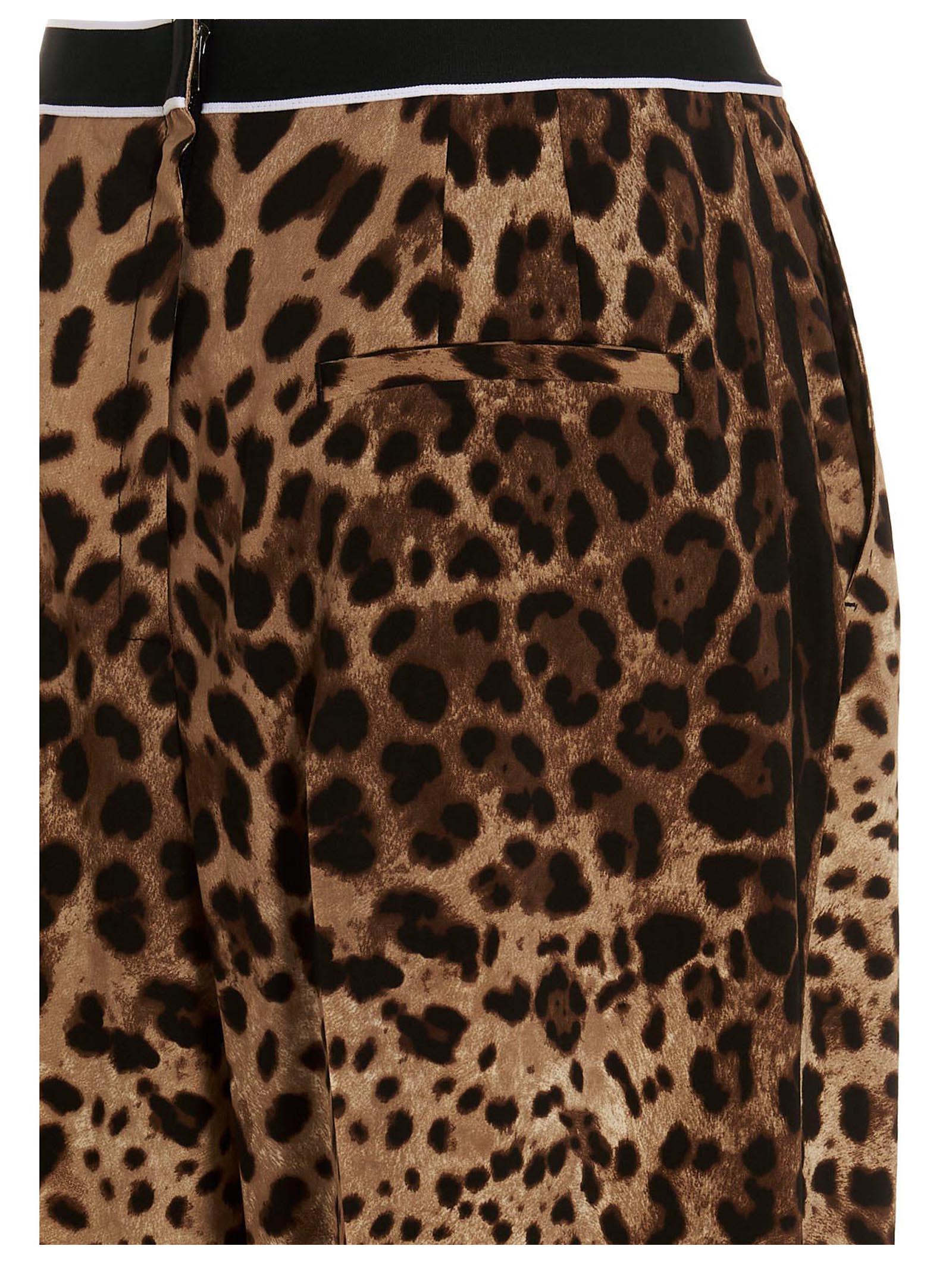 All over leopard print skirt featuring a fabric band at the waist with a logo.