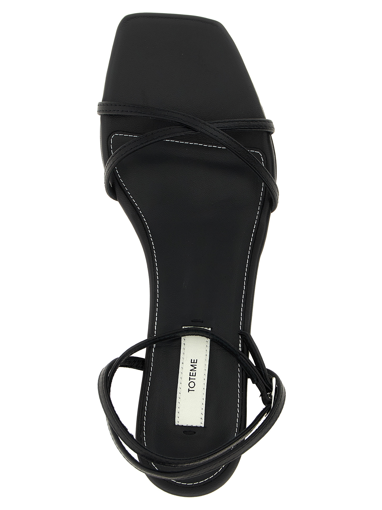 ‘Letaher Crossover’ leather sandals with adjustable ankle strap, heel, leather sole.