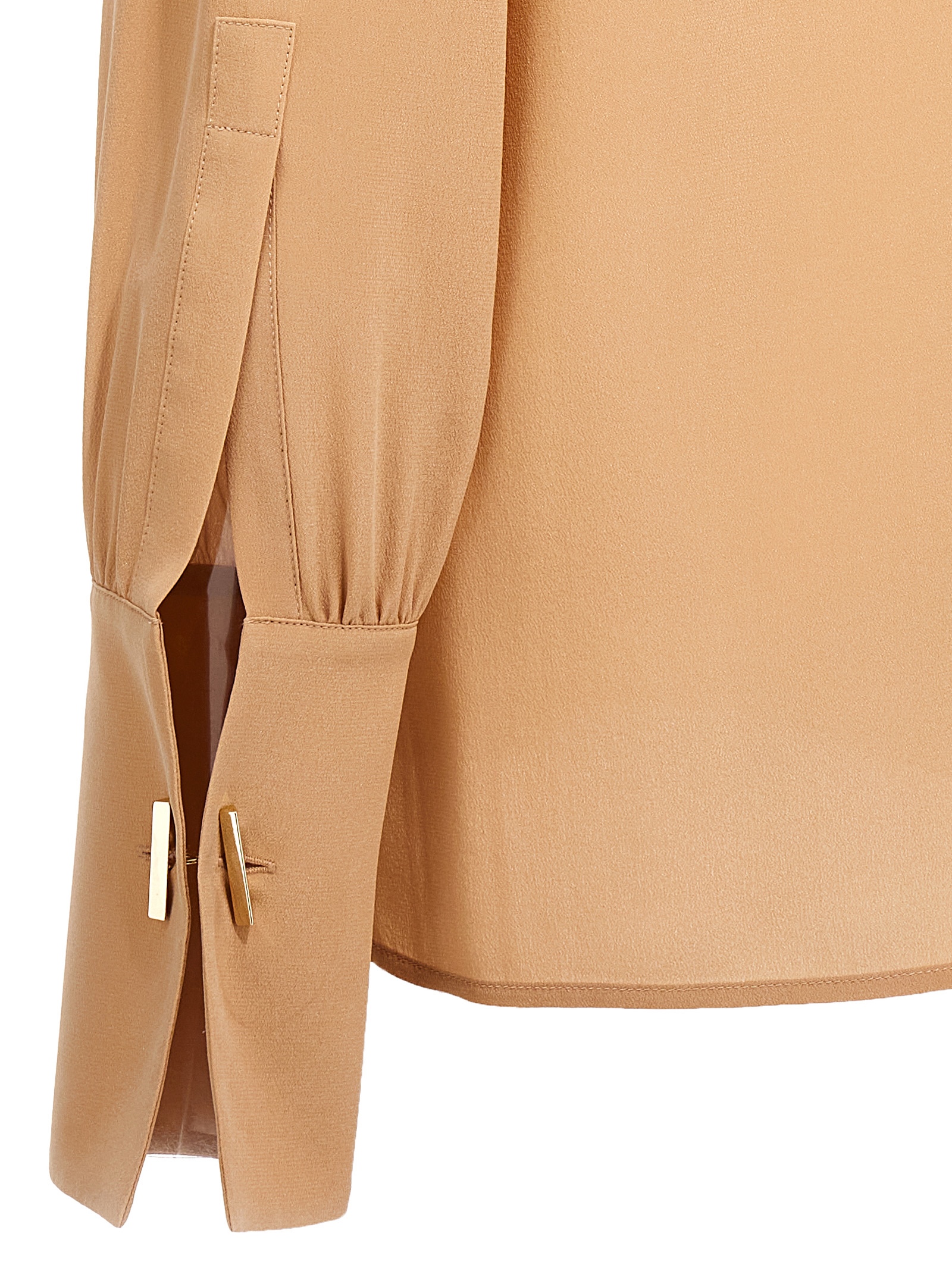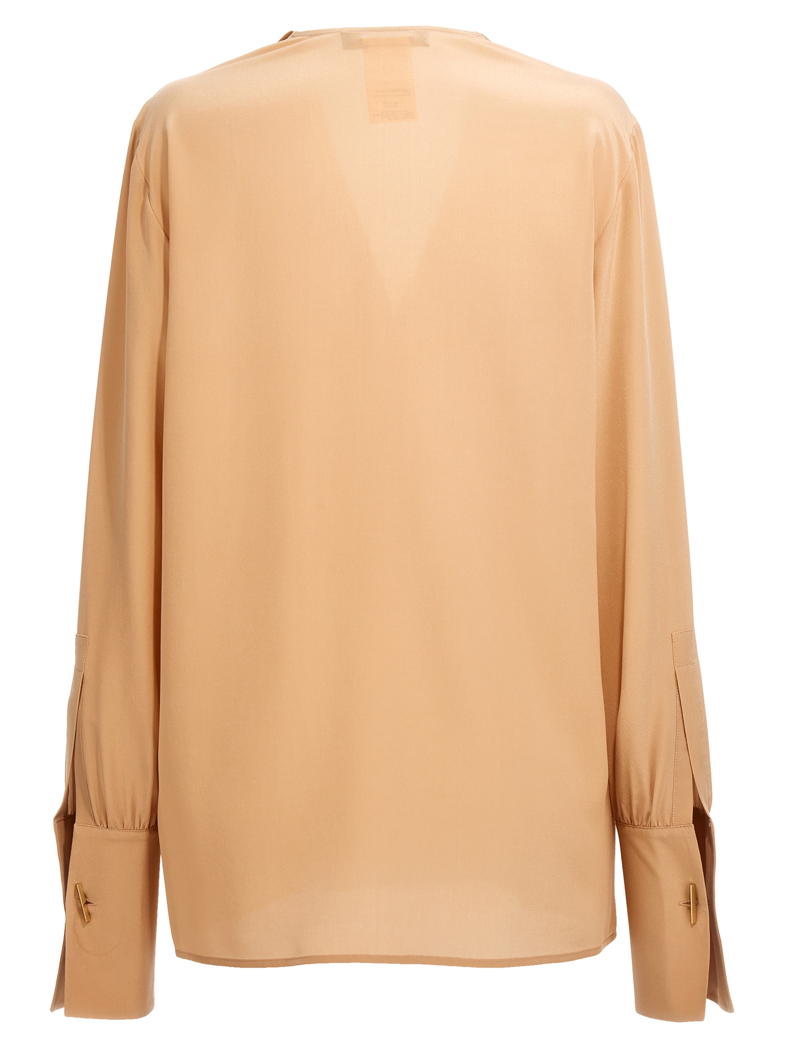 Leva’ silk shirt with V-neck, ruptures and buttons, long cuffed sleeves and cufflinks.