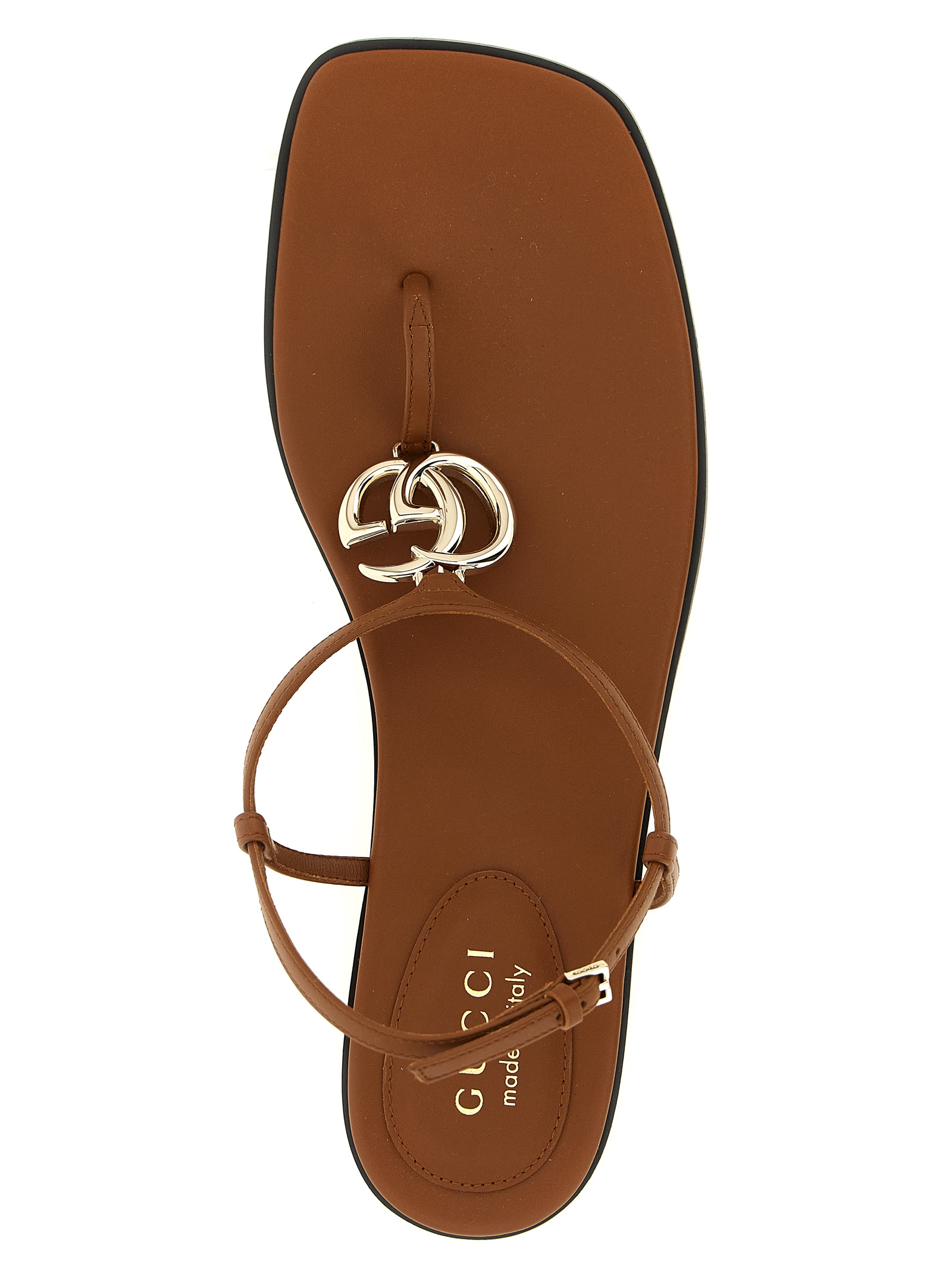 ‘Lifford’ smooth leather T-thong sandals with metal ‘Incrocio GG’ detail on the front, square toe, adjustable strap, leather sole with non-slip rubber island.