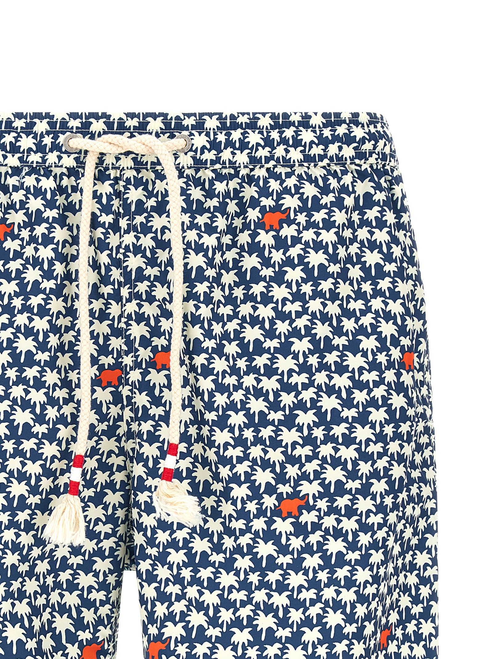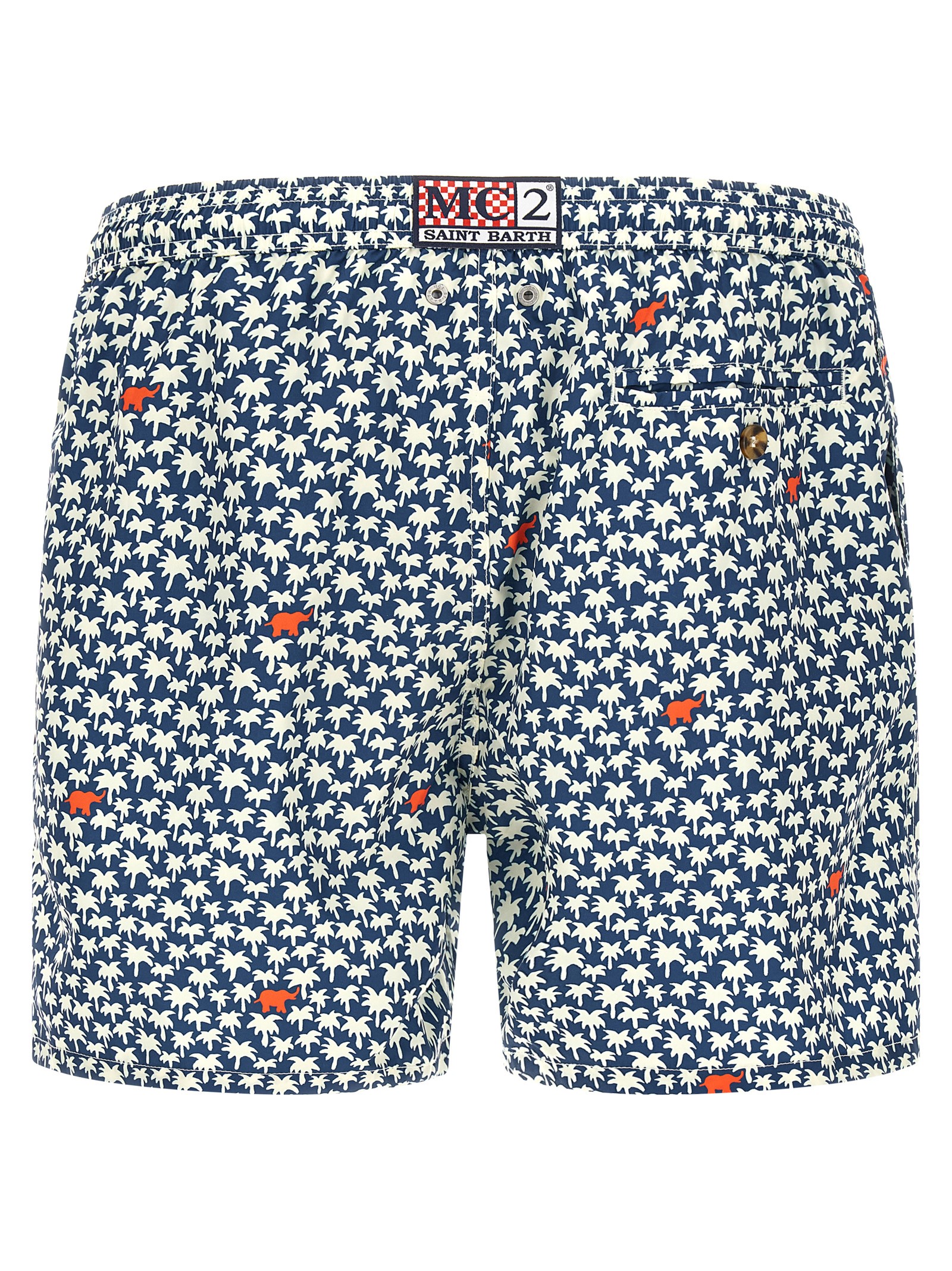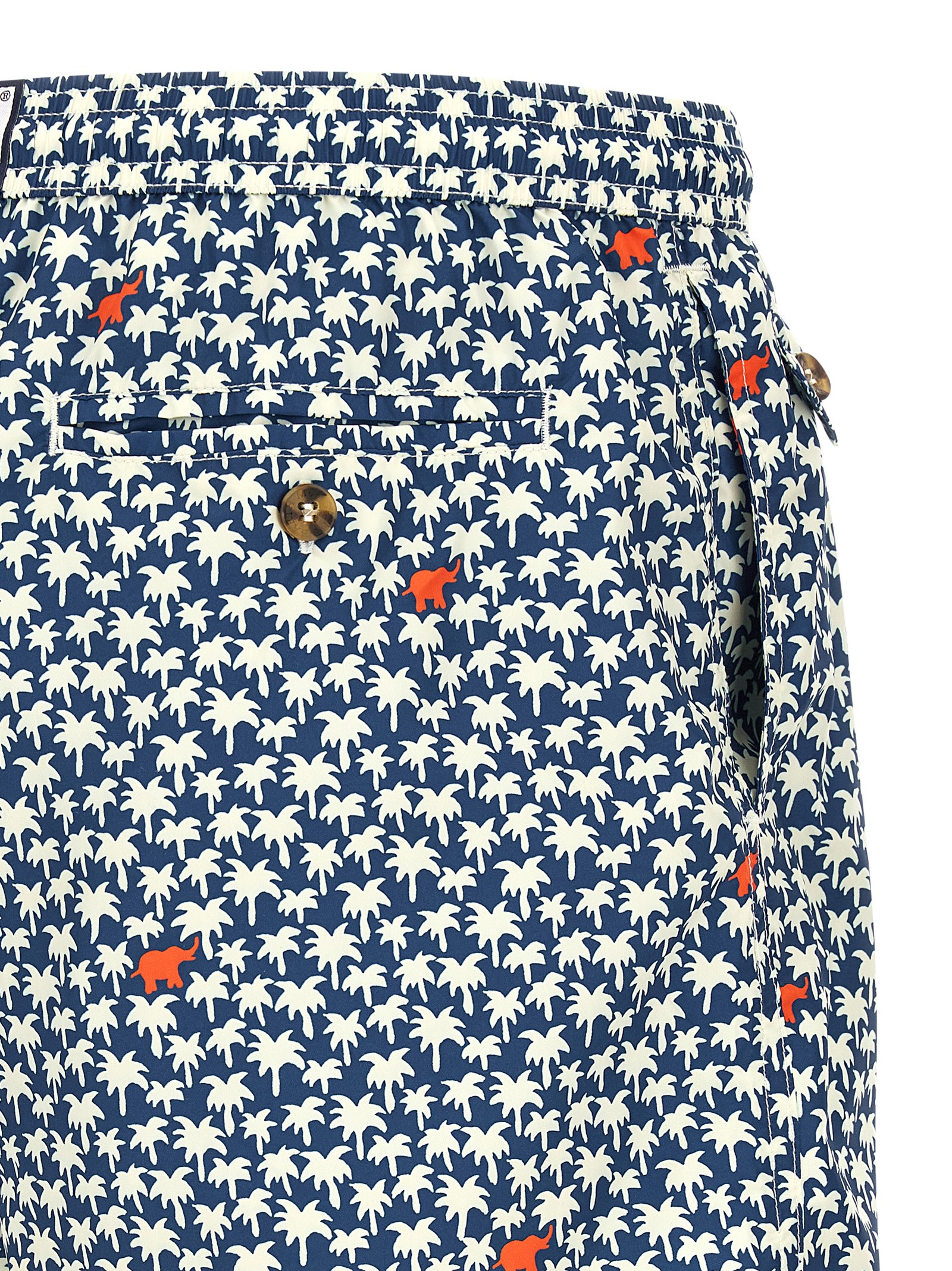 ‘Lighting’ swimsuit in quick-drying ‘El Palm’ print light technical fabric with medium length, back logo patch, drawstring elastic waistband, pockets, side slits at the hem, inner mesh briefs.