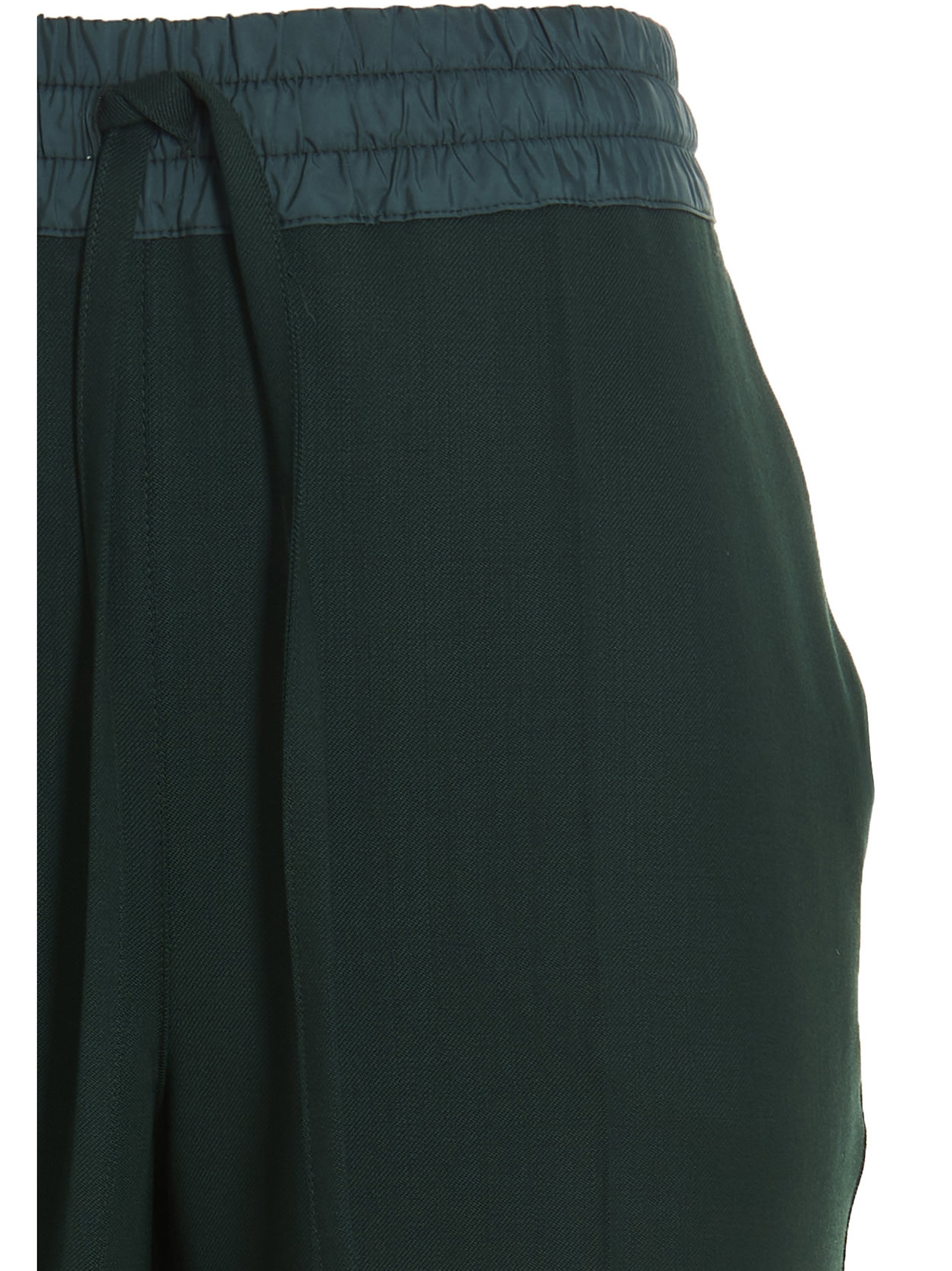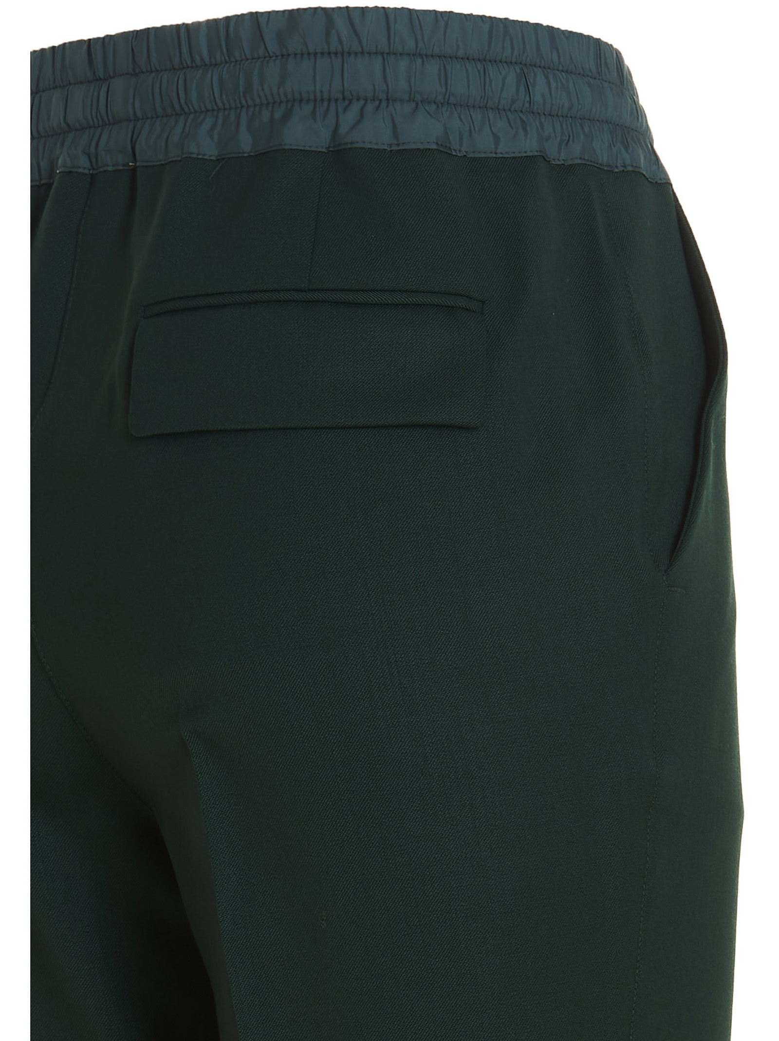 ‘Liliuxy’ virgin wool pants featuring a leg with a central crease down the front, pockets, an elastic and a drawstring at the waist and turn-up hem.