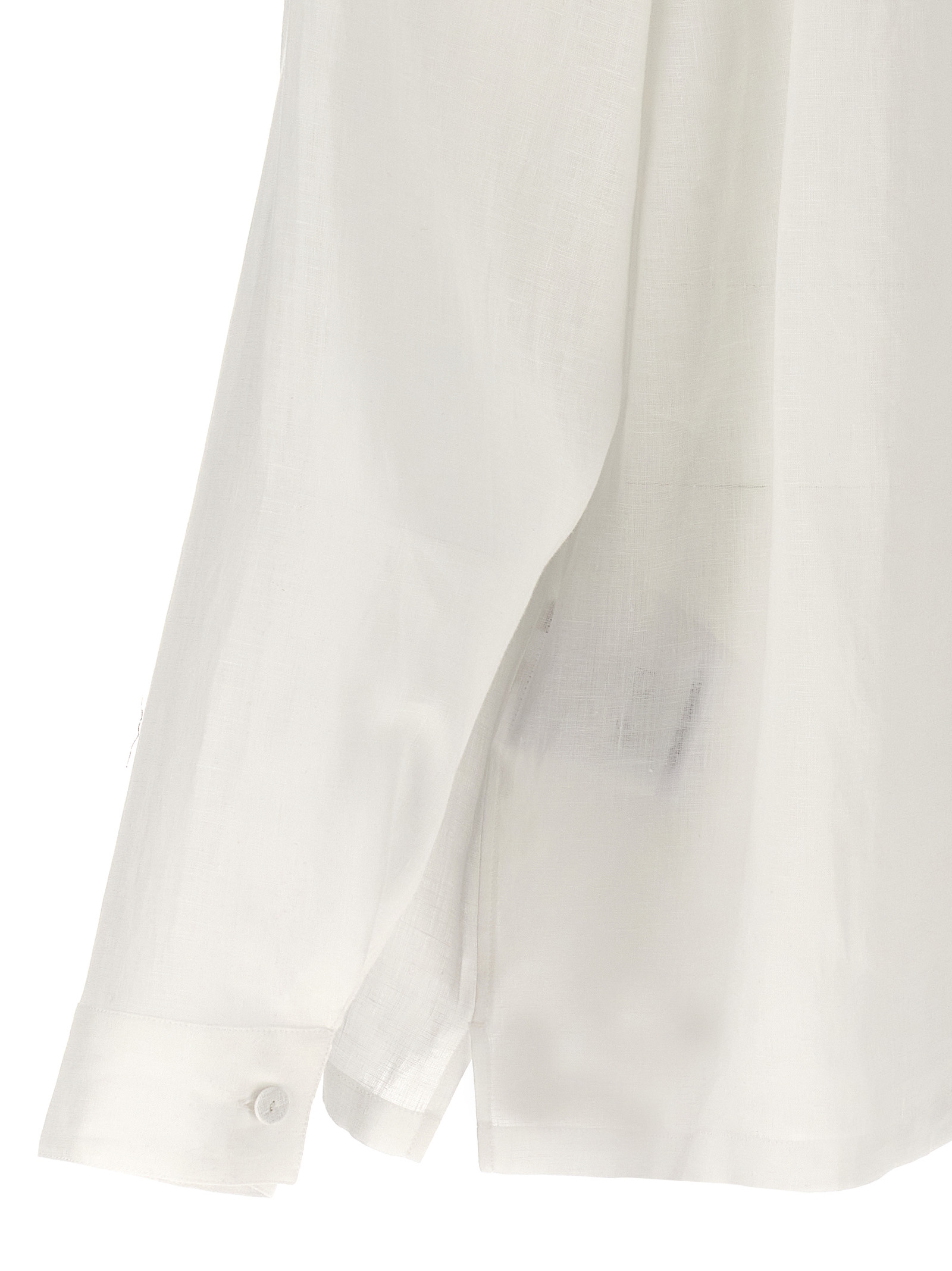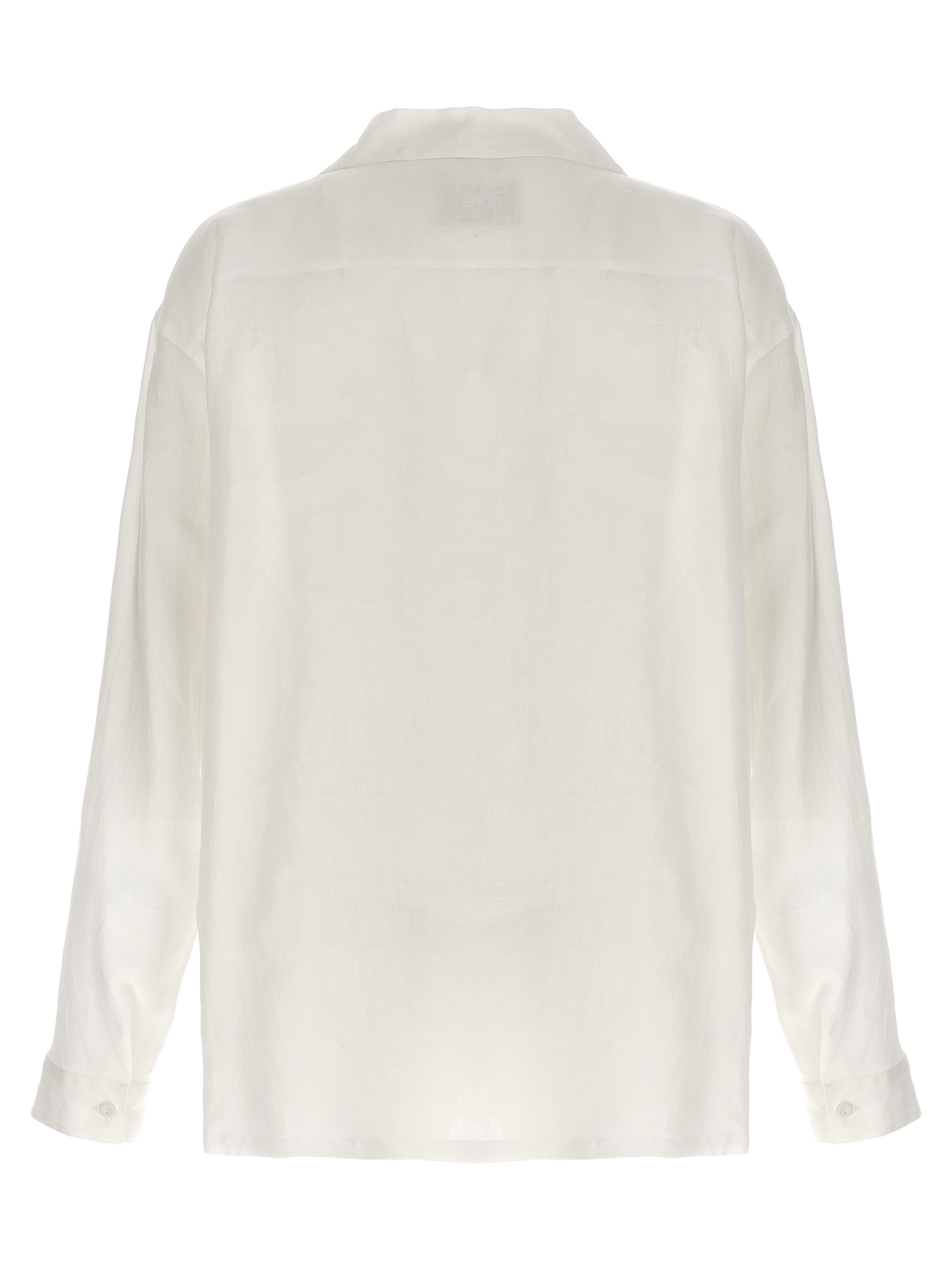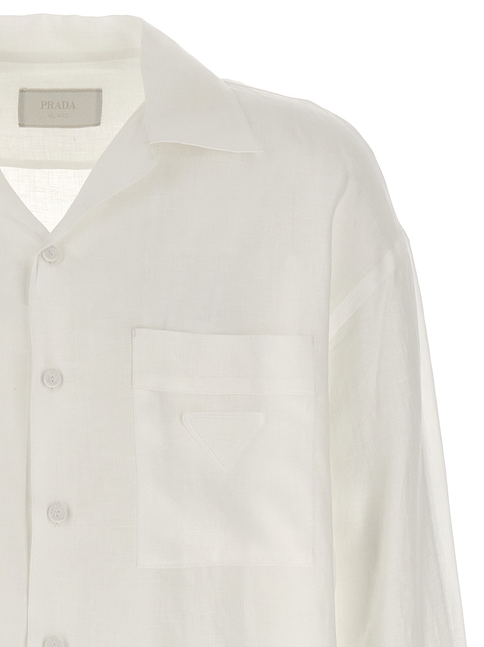 Linen shirt, front pocket with logo, button closure, long cuffed sleeves.