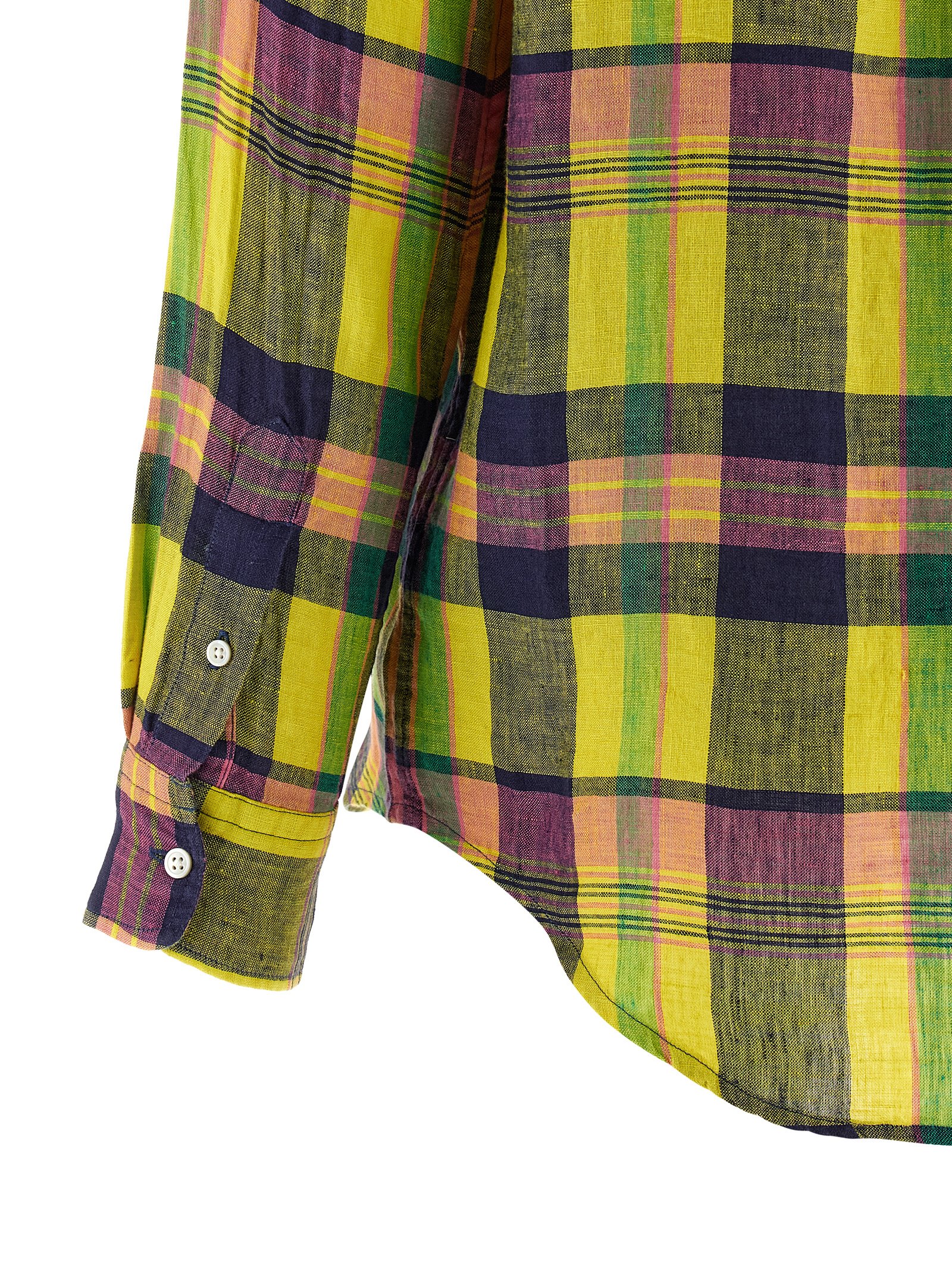 Linen shirt with check print, logo embroidery, front button closure, long cuffed sleeves.