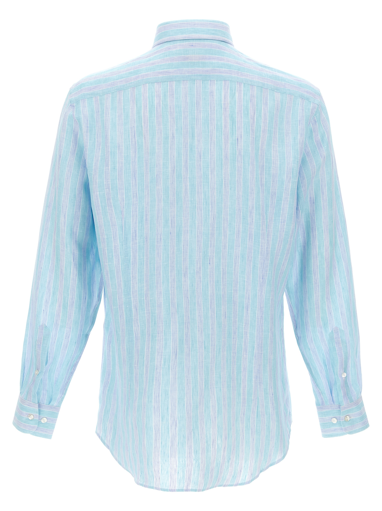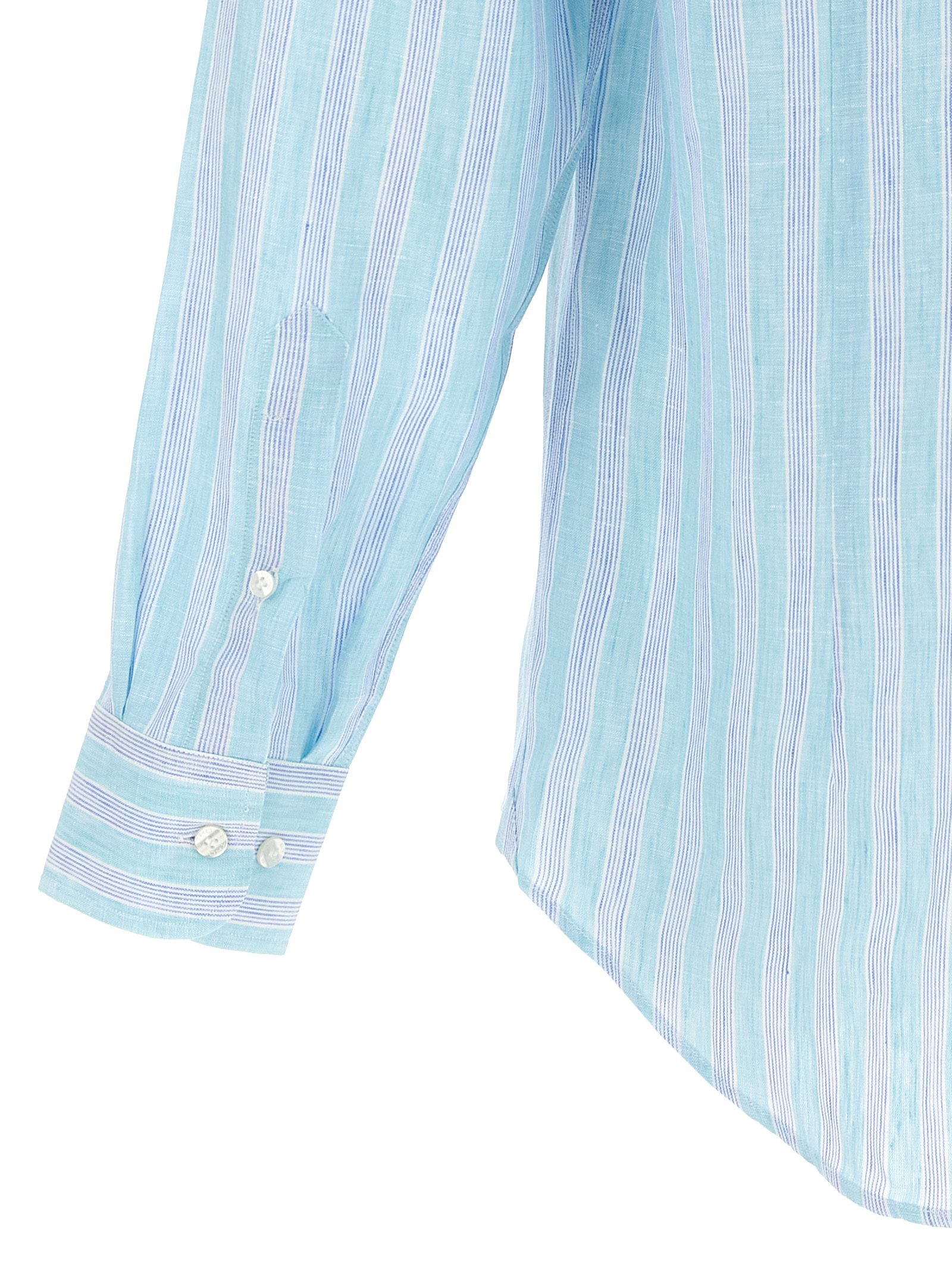 Striped linen shirt, front ‘Pegaso’ logo embroidery, button closure, long cuffed sleeves.