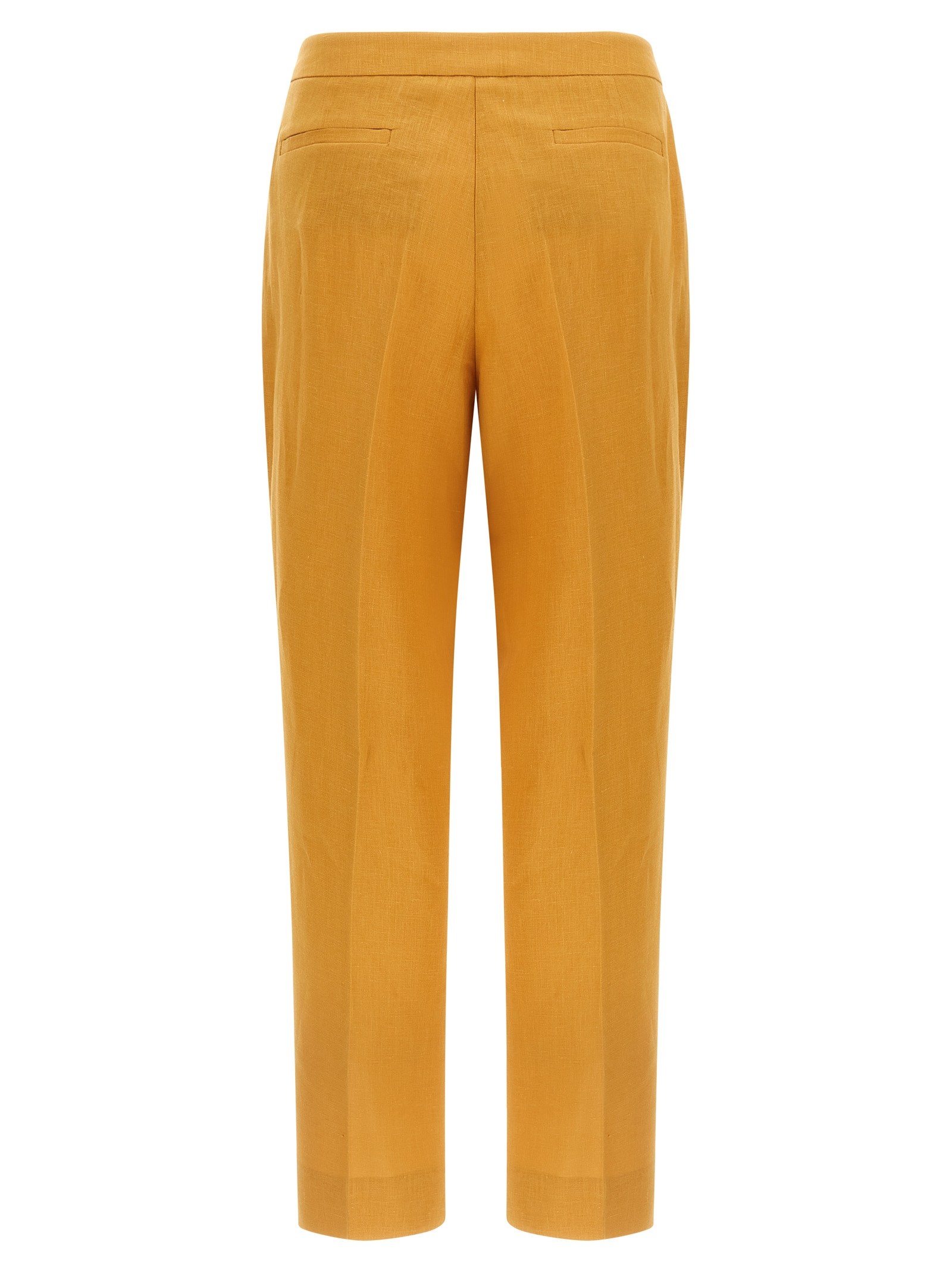Light linen tailored trousers, stretched pleat, straight leg, front zip and button closure, front American pockets, back welt pockets.
