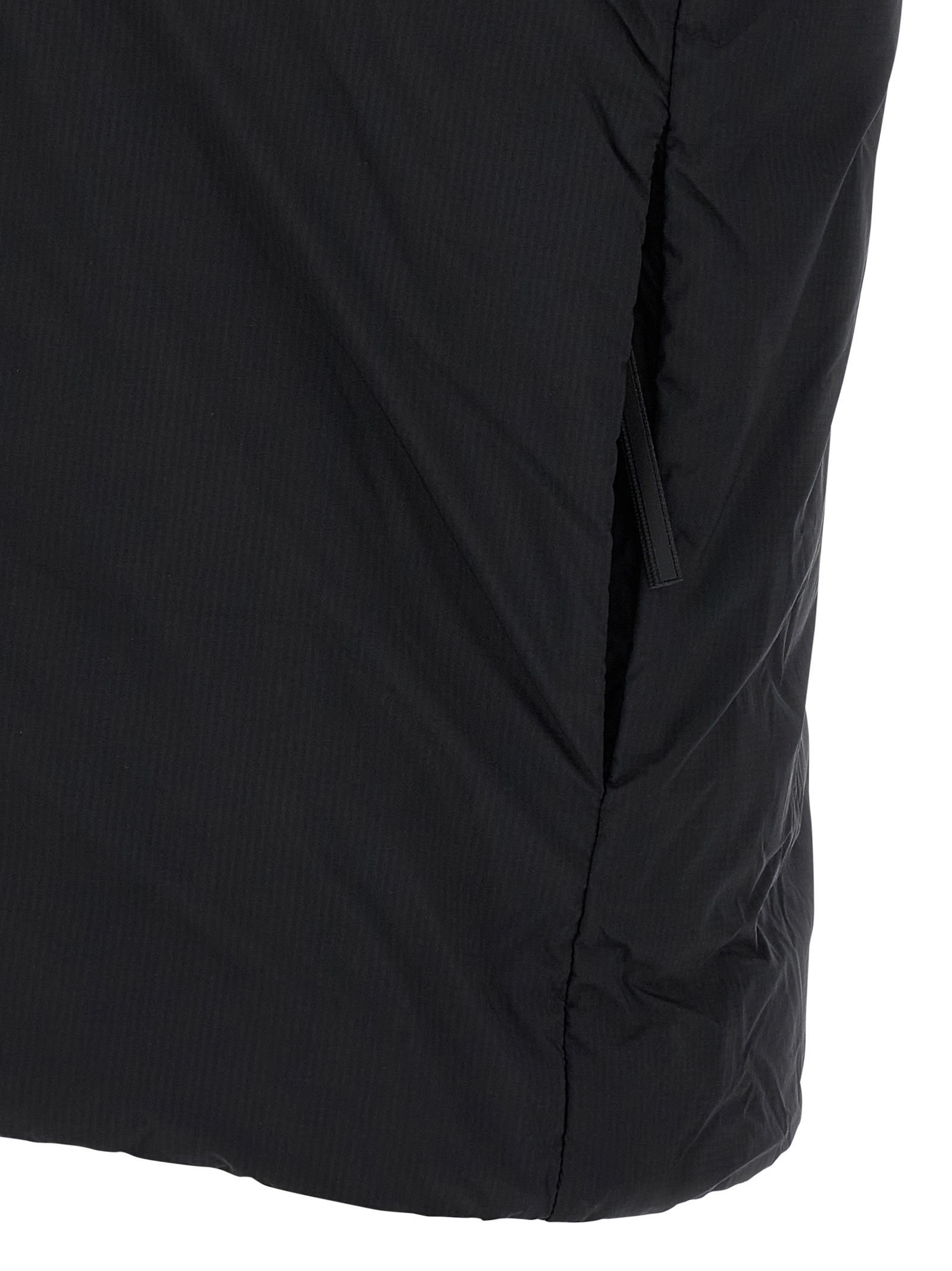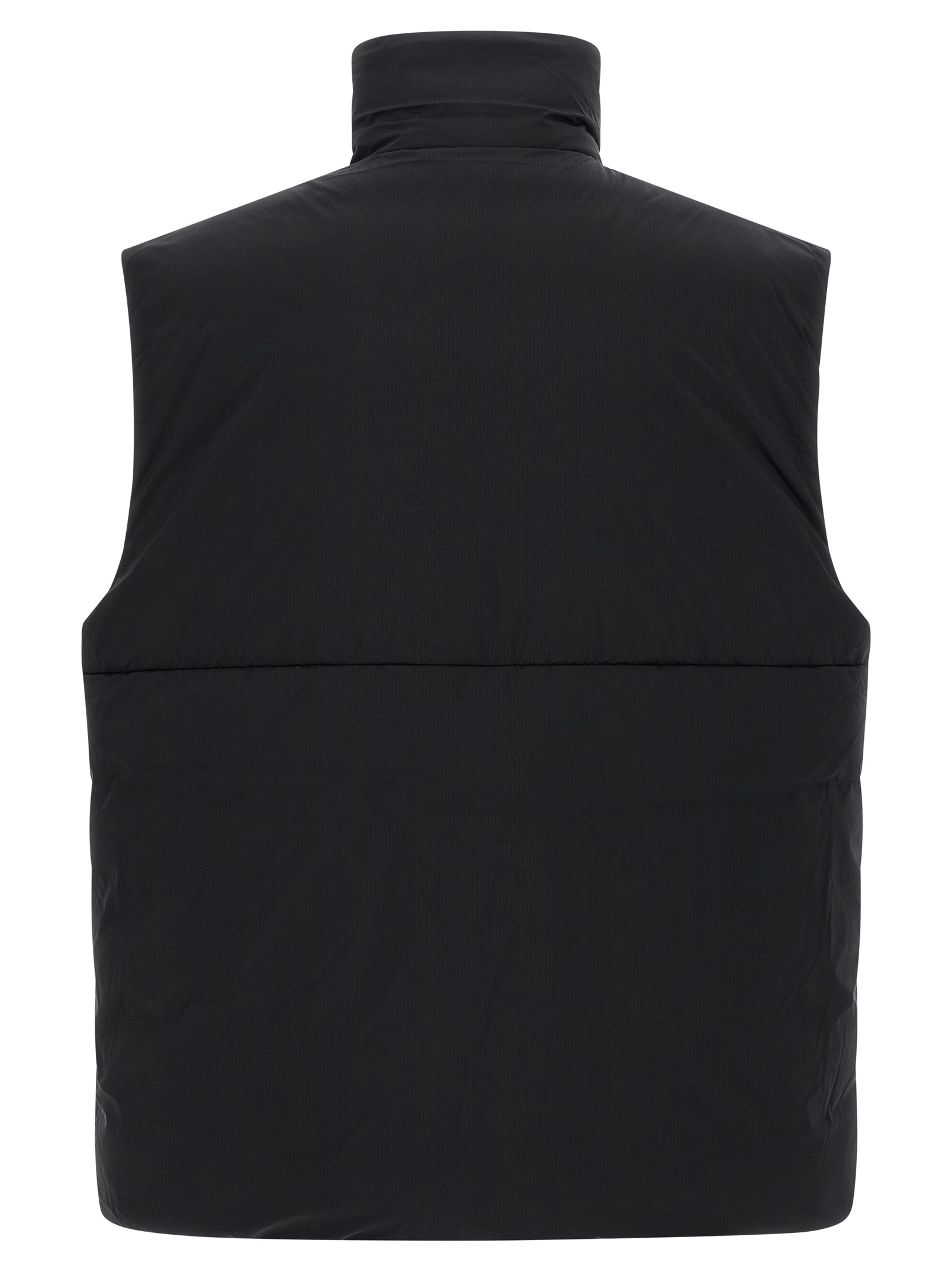 ‘Lodge’ water-repellent ripstop vest with quilted matte finish and slightly goose feather padding, high neck, logo patch and front zip closure, pockets, drawstring on the hem.