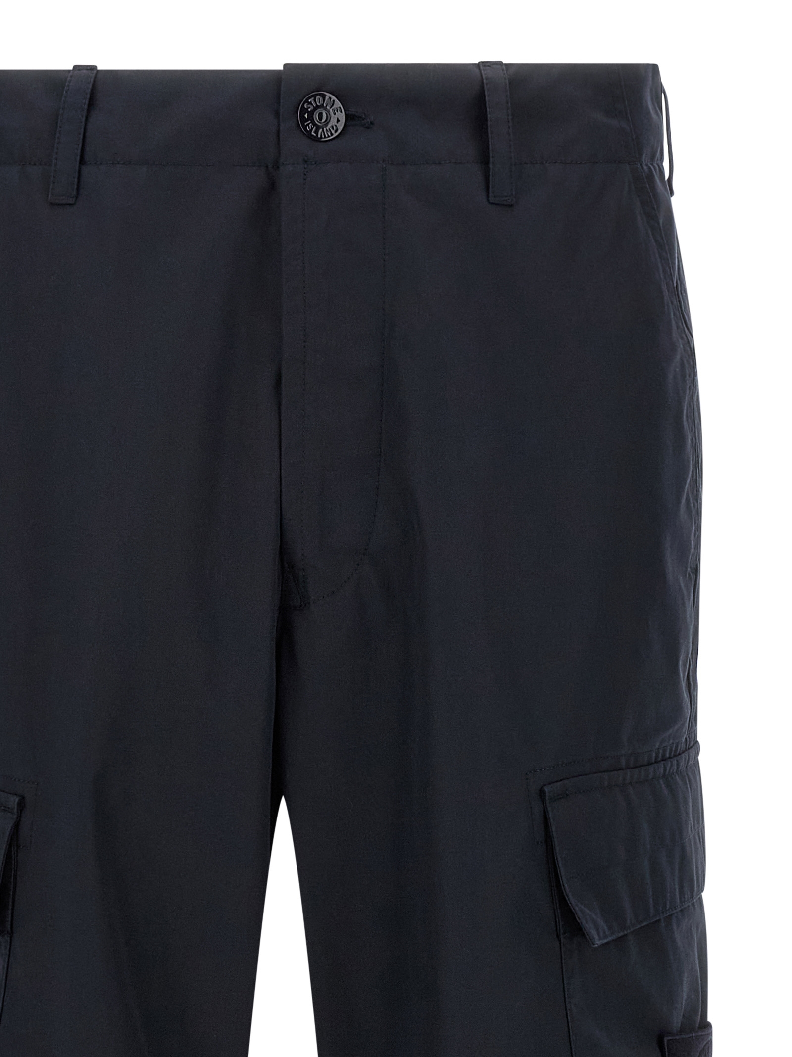 Cotton cargo pants with tone-on-tone logo badge, straight leg, zip and button closure, pockets.