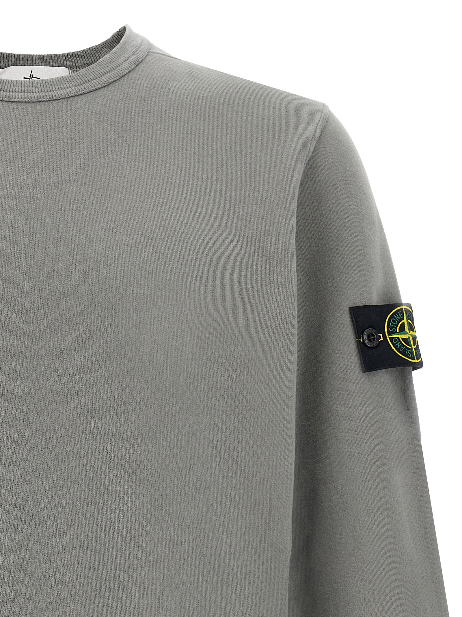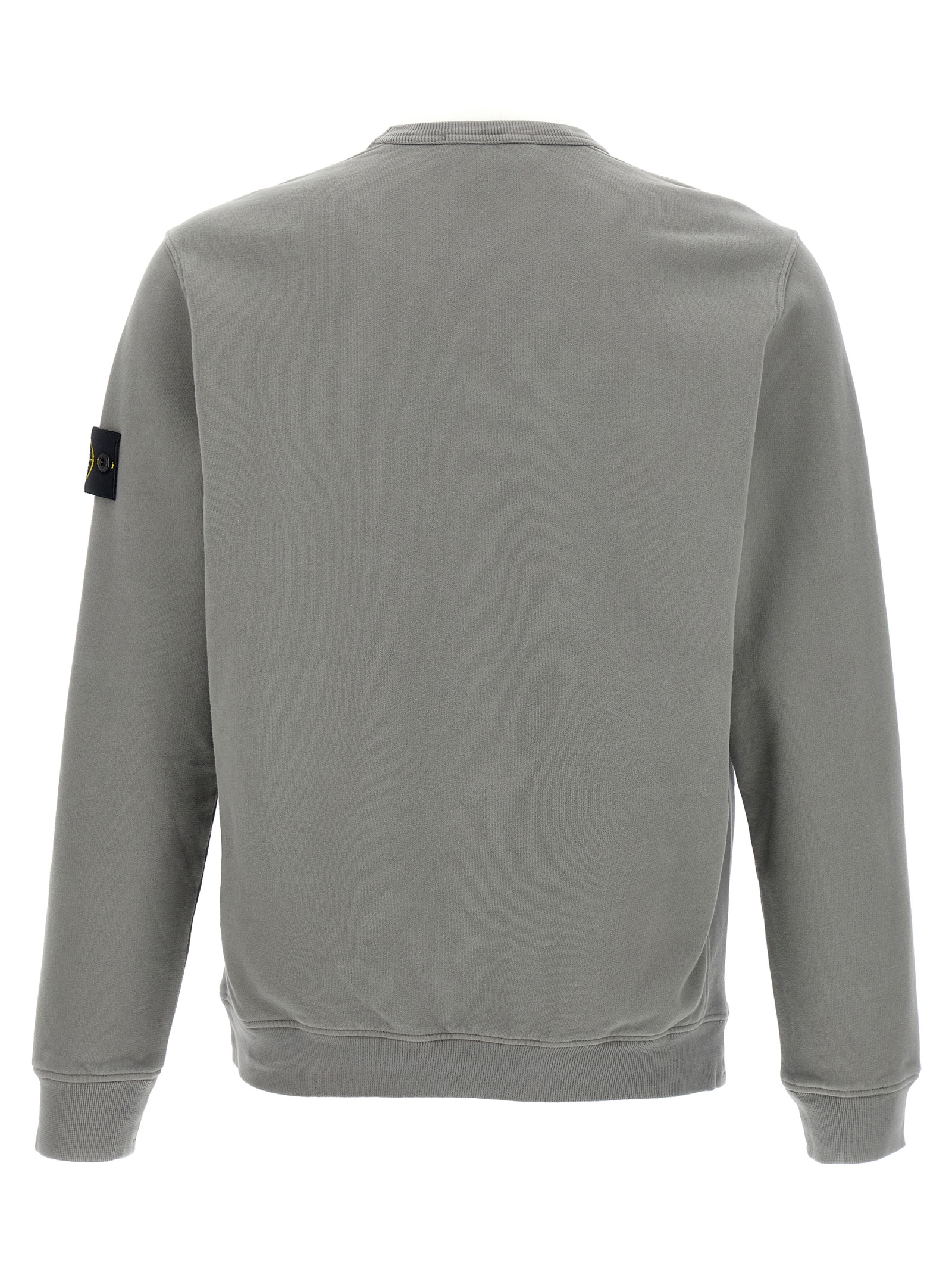 Fleece cotton sweatshirt with ribbed cotton side insert, crew neck, long cuffed sleeves and a logo badge.