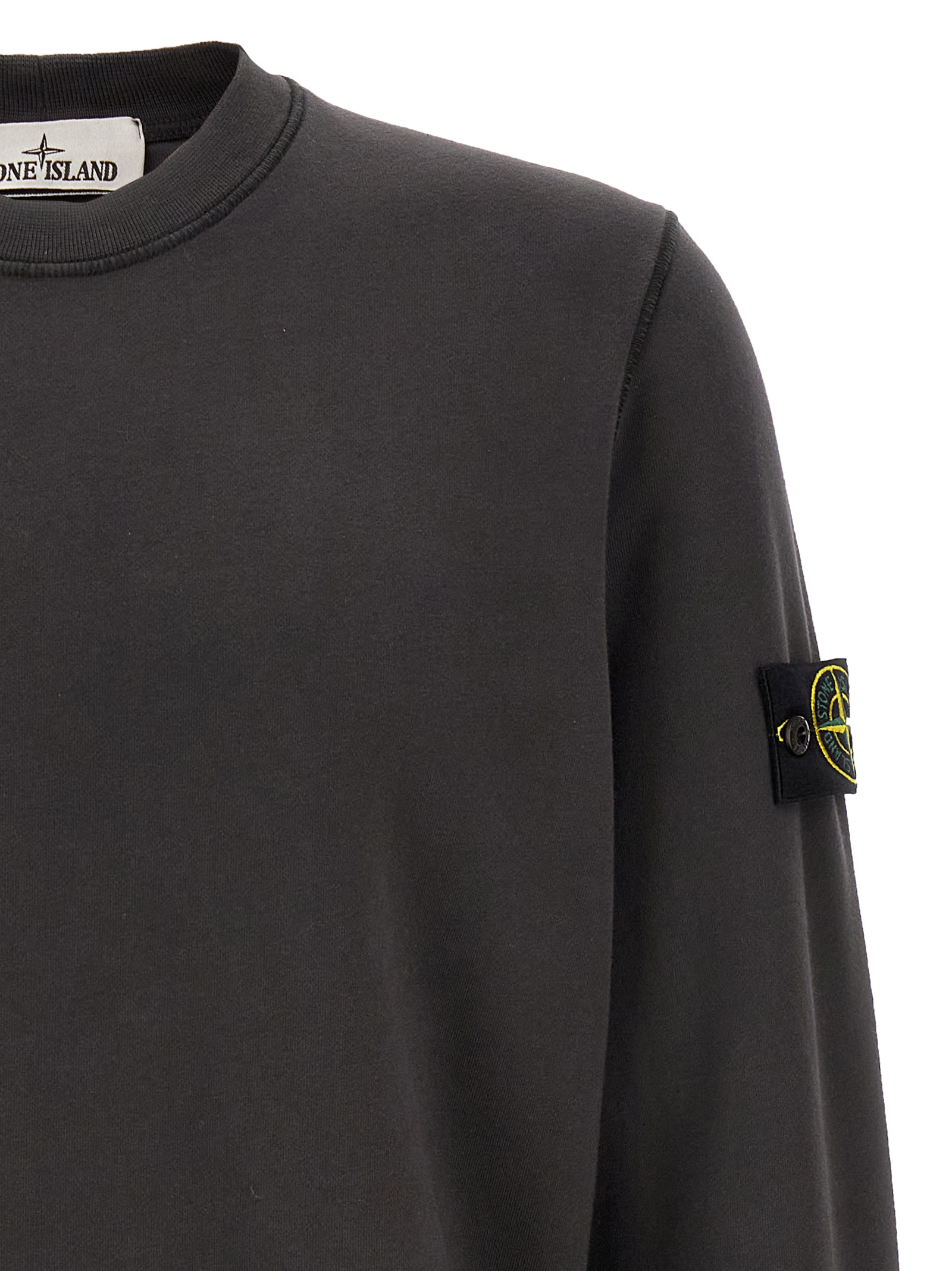 Sweatshirt in brushed cotton, with crewneck, long sleeves with cuffs and logo badge.