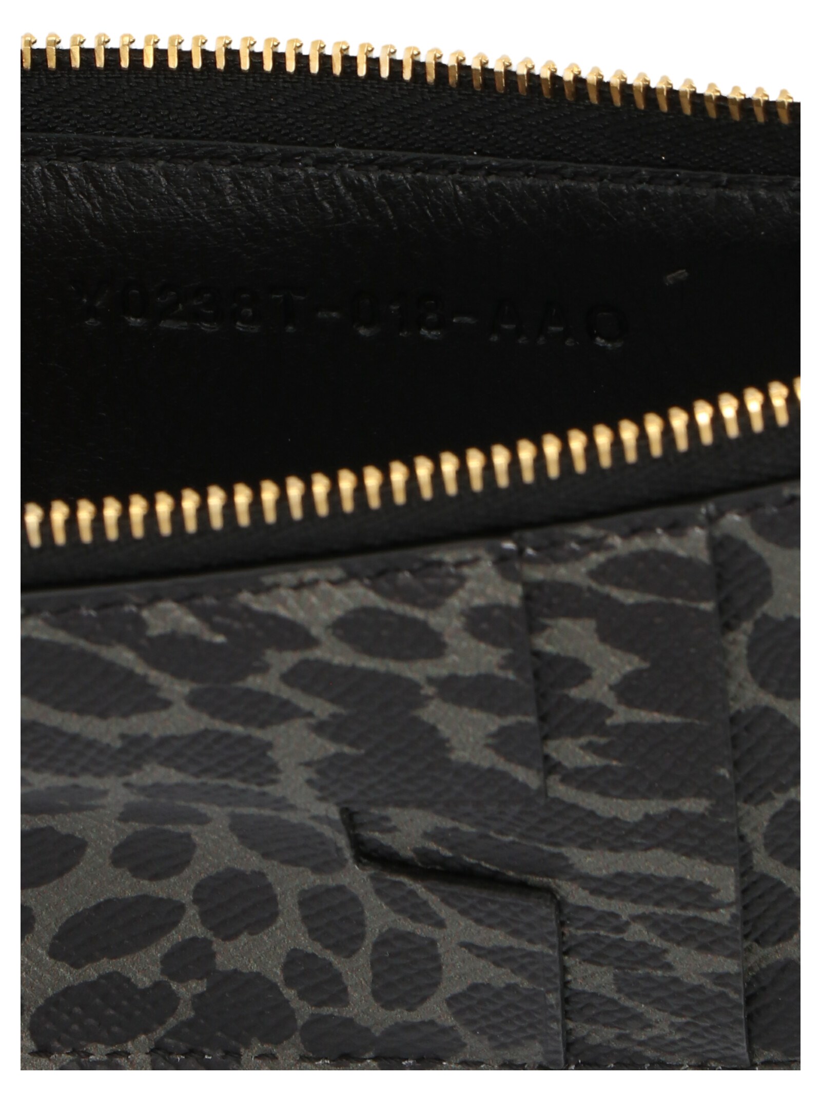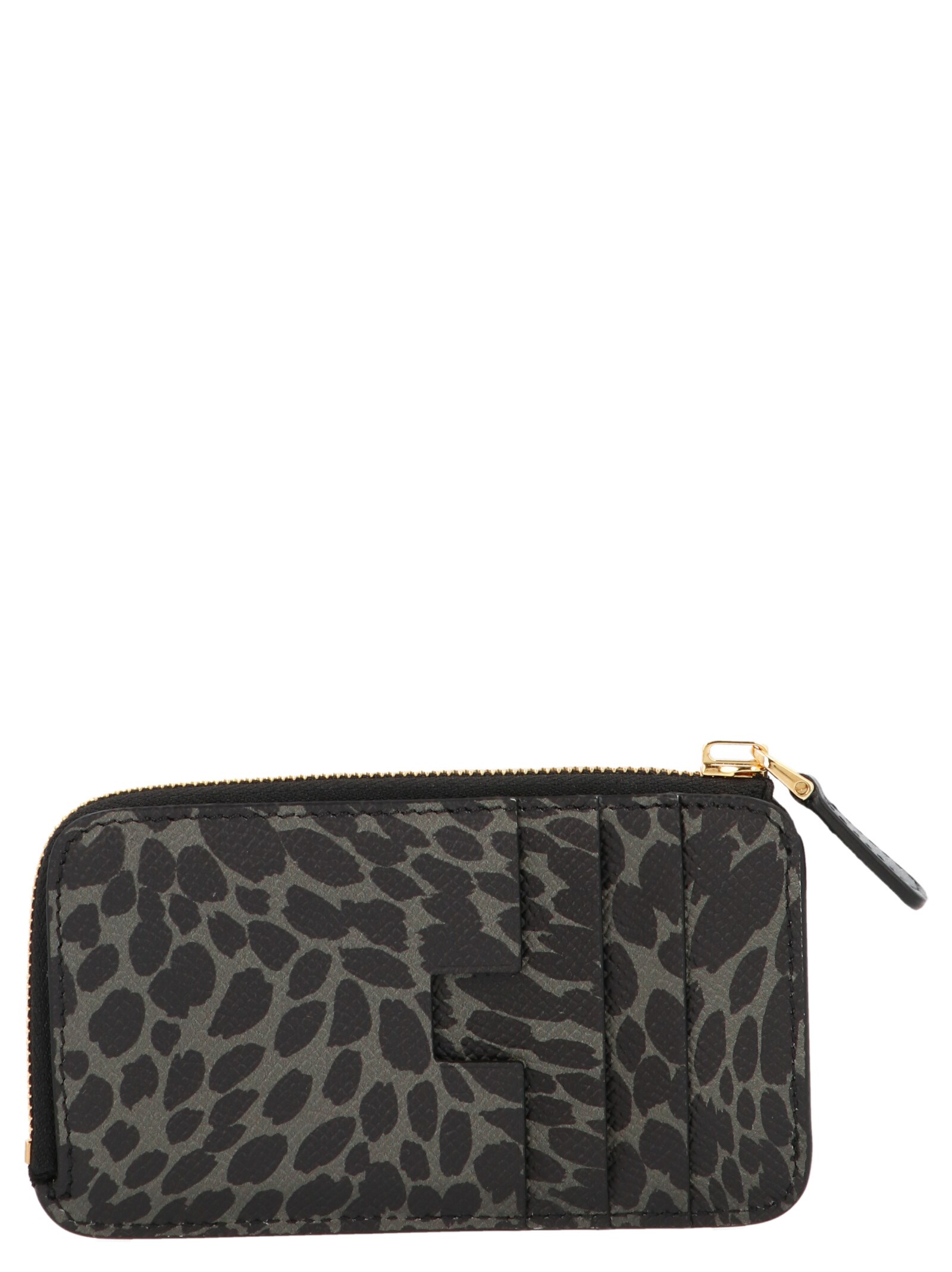 Animal hammered leather card-holder with front gold logo and zip closure.