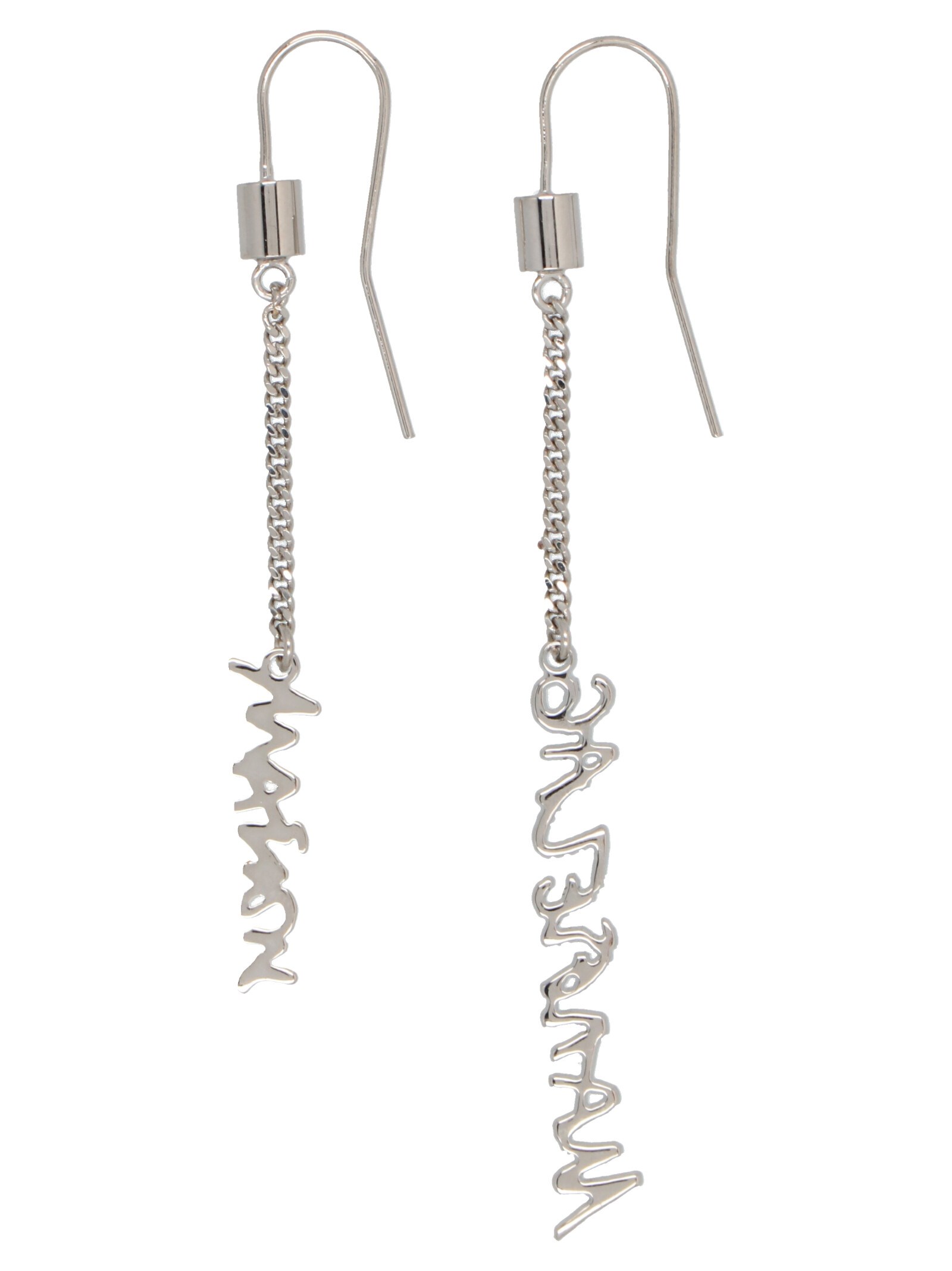 Gold brass earrings with logo and hoop closure. NON-RETURNABLE PRODUCT