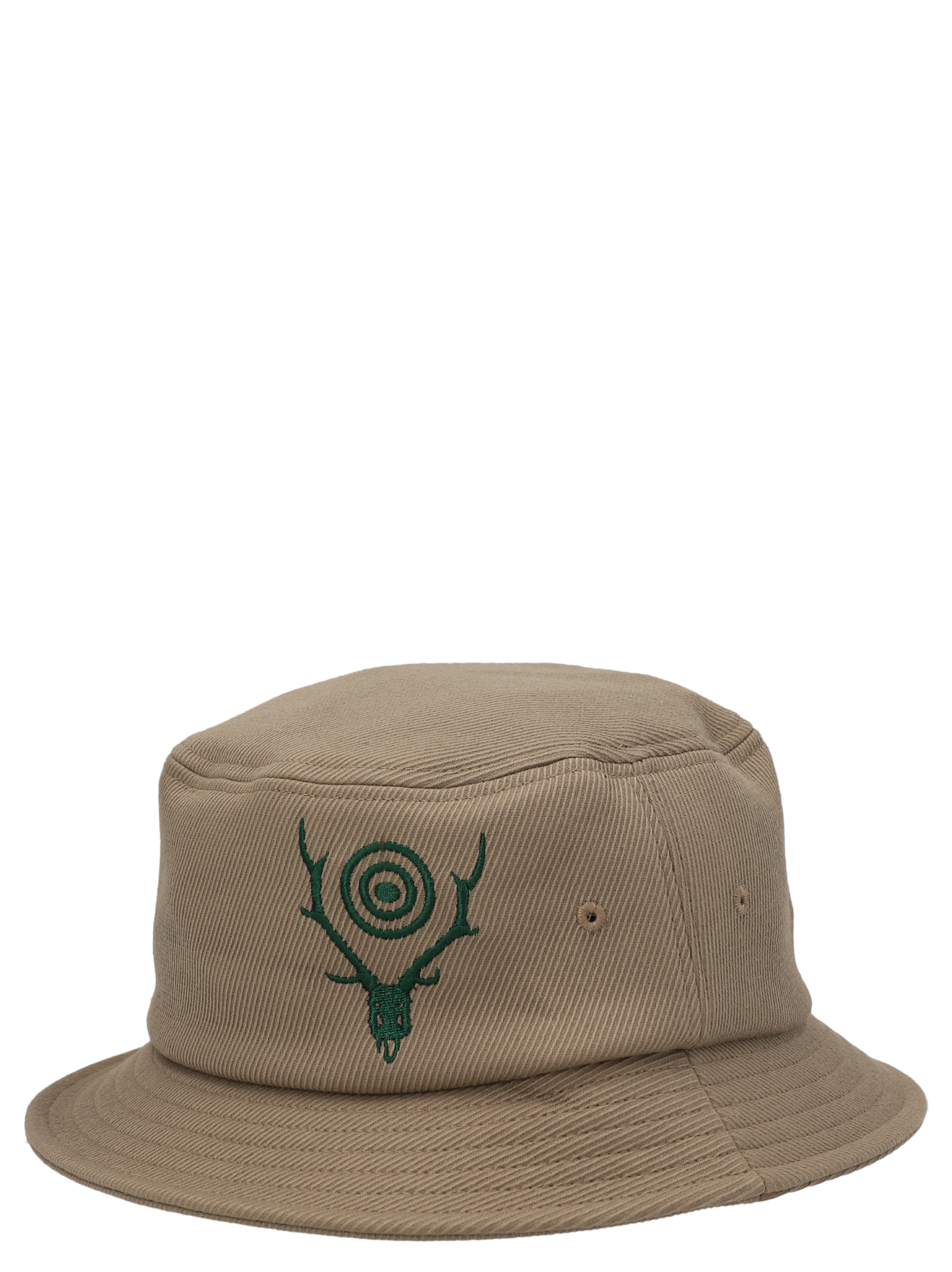 Canvas bucket hat with an embroidered logo at the front.