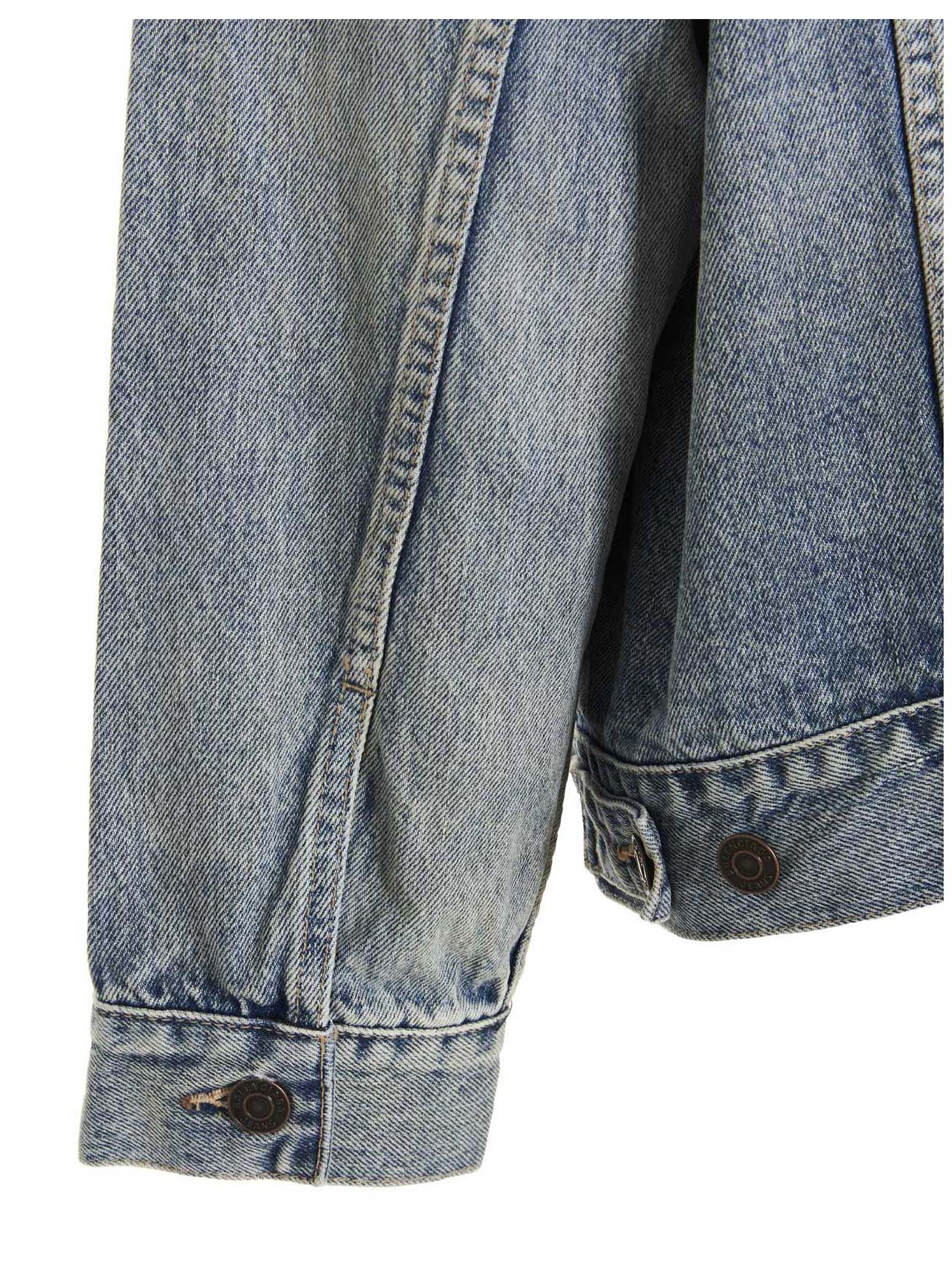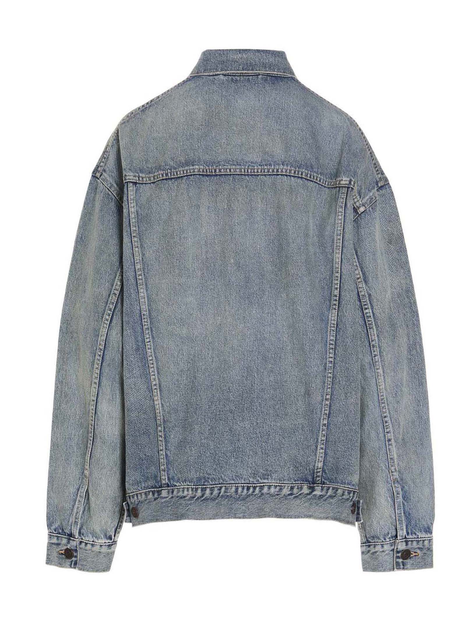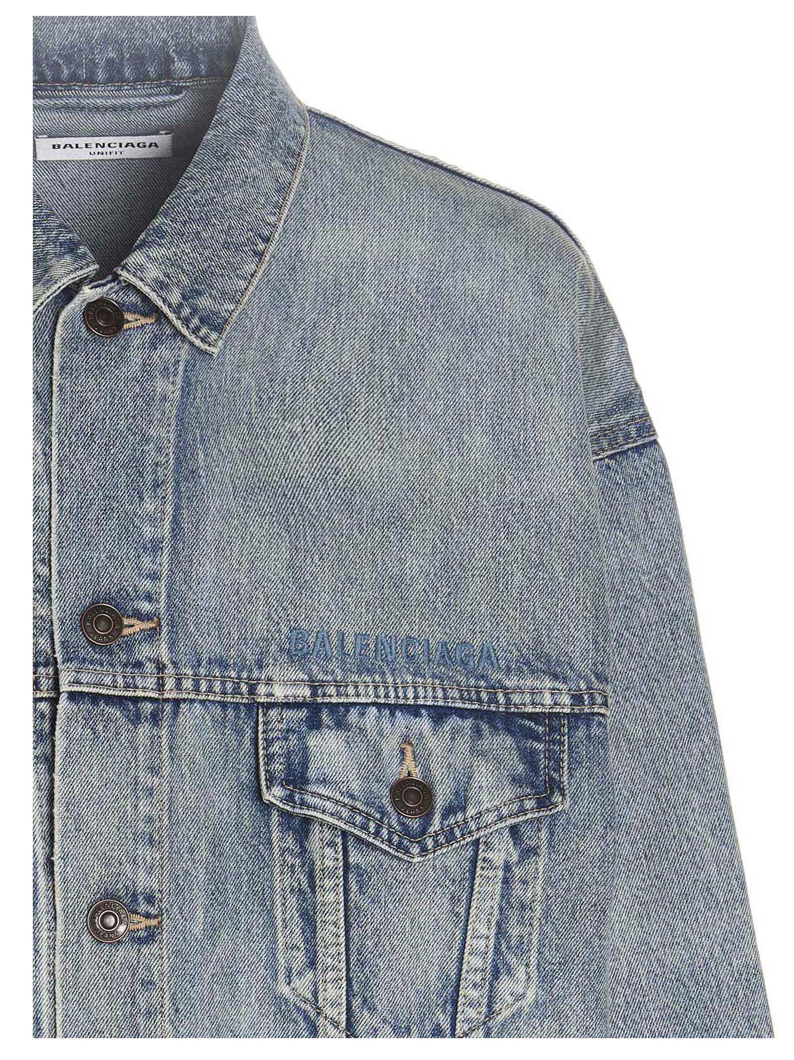 Denim jacket with a tone-on-tone embroidered logo and chest pockets, comfort fit.