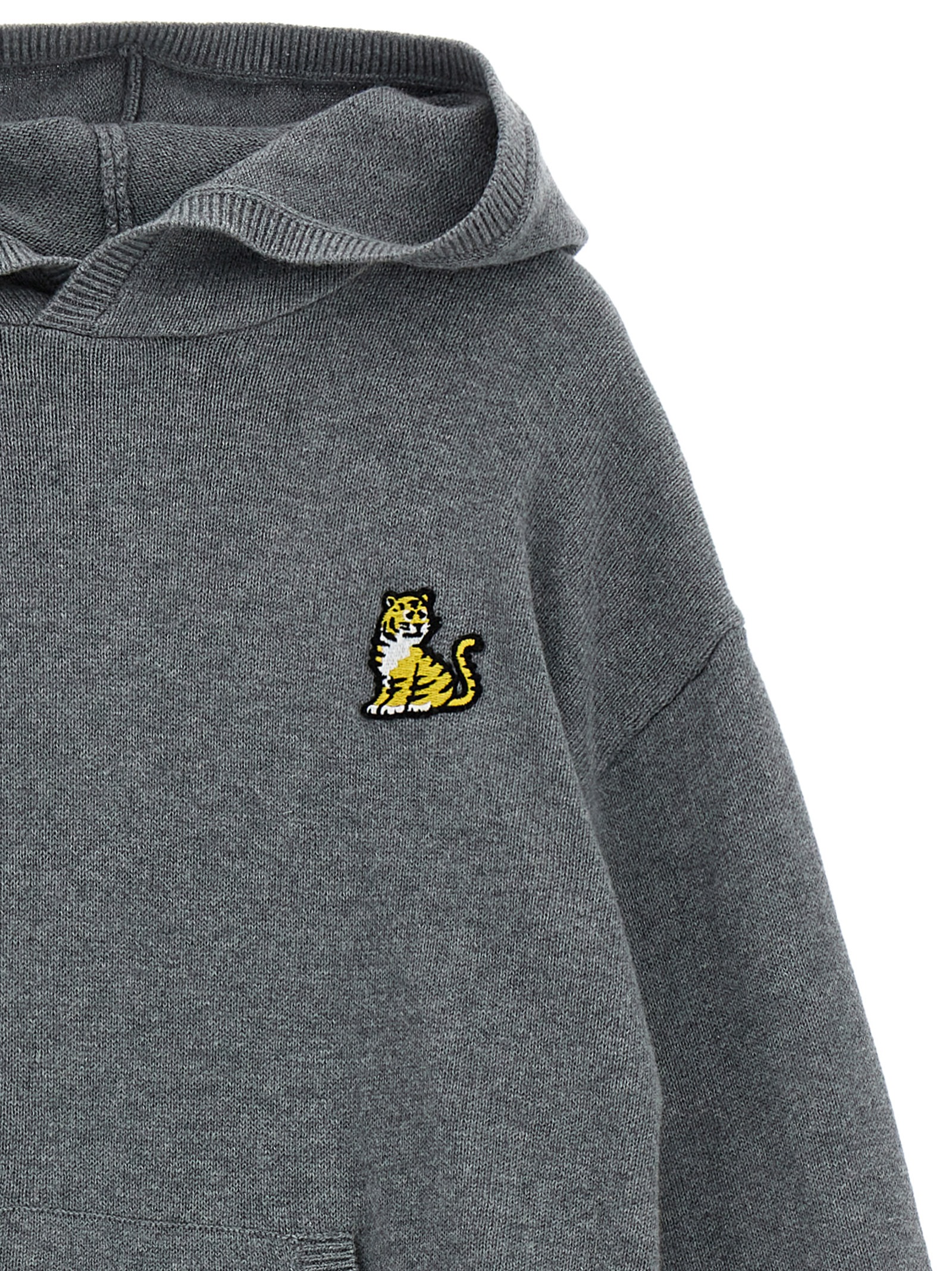 Cotton and wool hooded sweater with logo embroidery on the front and back, long cuffed sleeves.