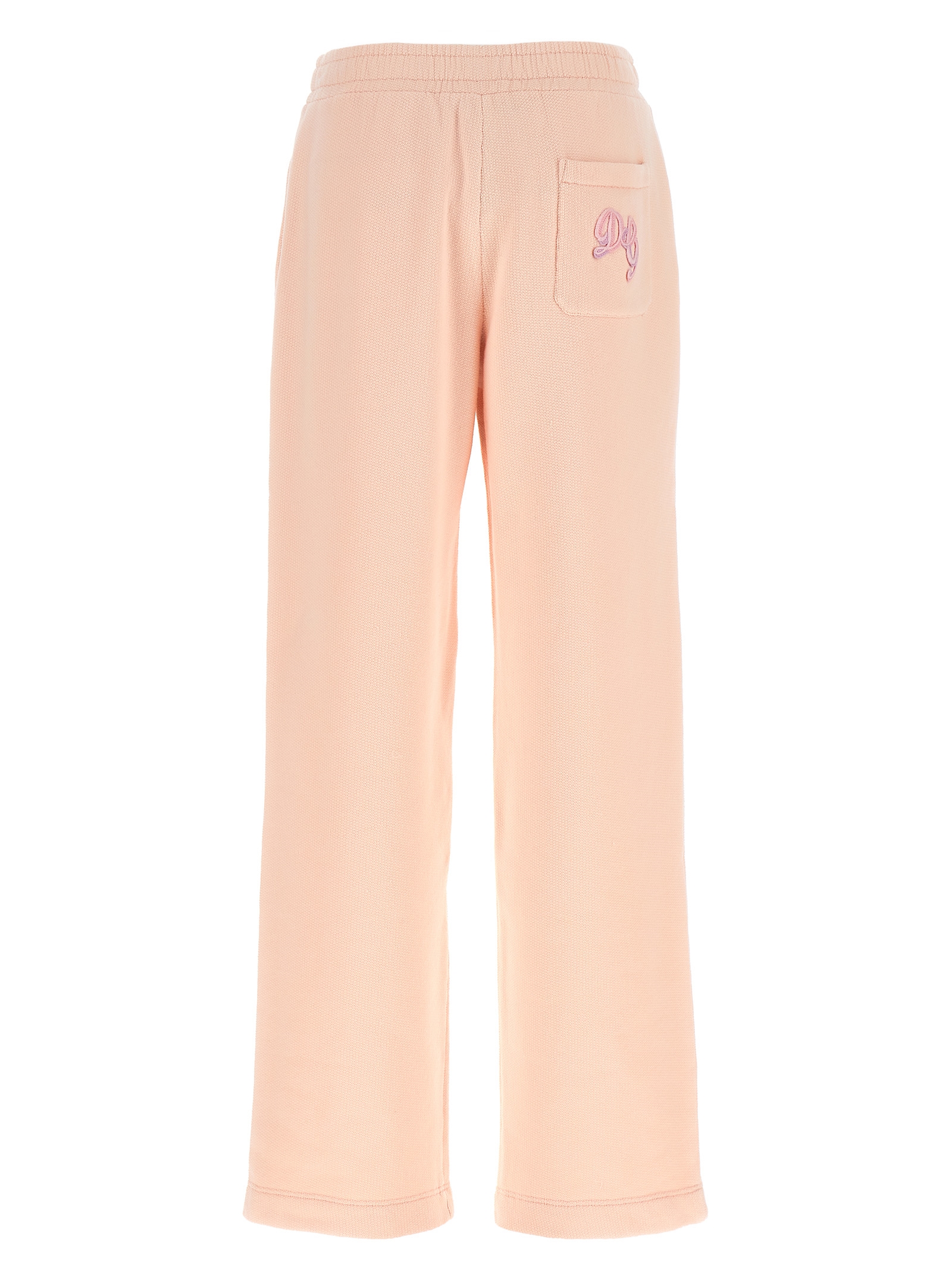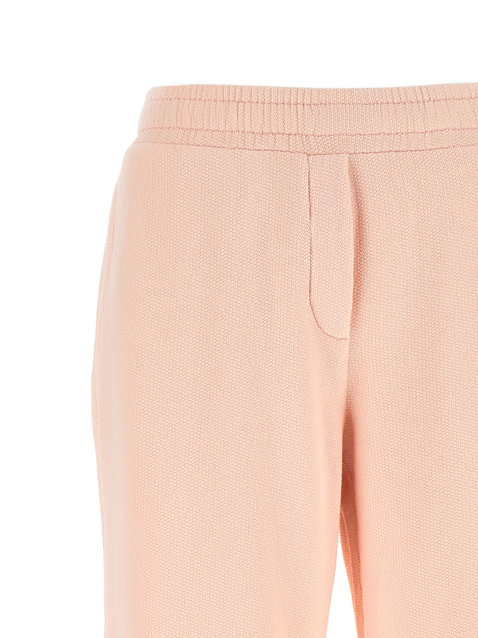 Honeycomb cotton joggers with brushed interior, flared wide leg, drawstring elastic waistband, trompe l’oeil flap, pockets, tone-on-tone logo embroidery on the back.