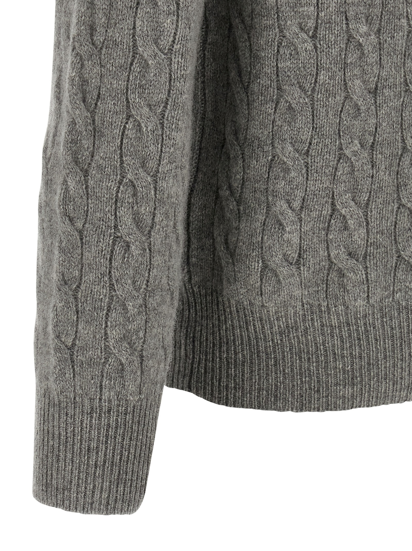 Braid wool and cashmere blend polo shirt, front logo embroidery, collar and buttons, long cuffed sleeves.