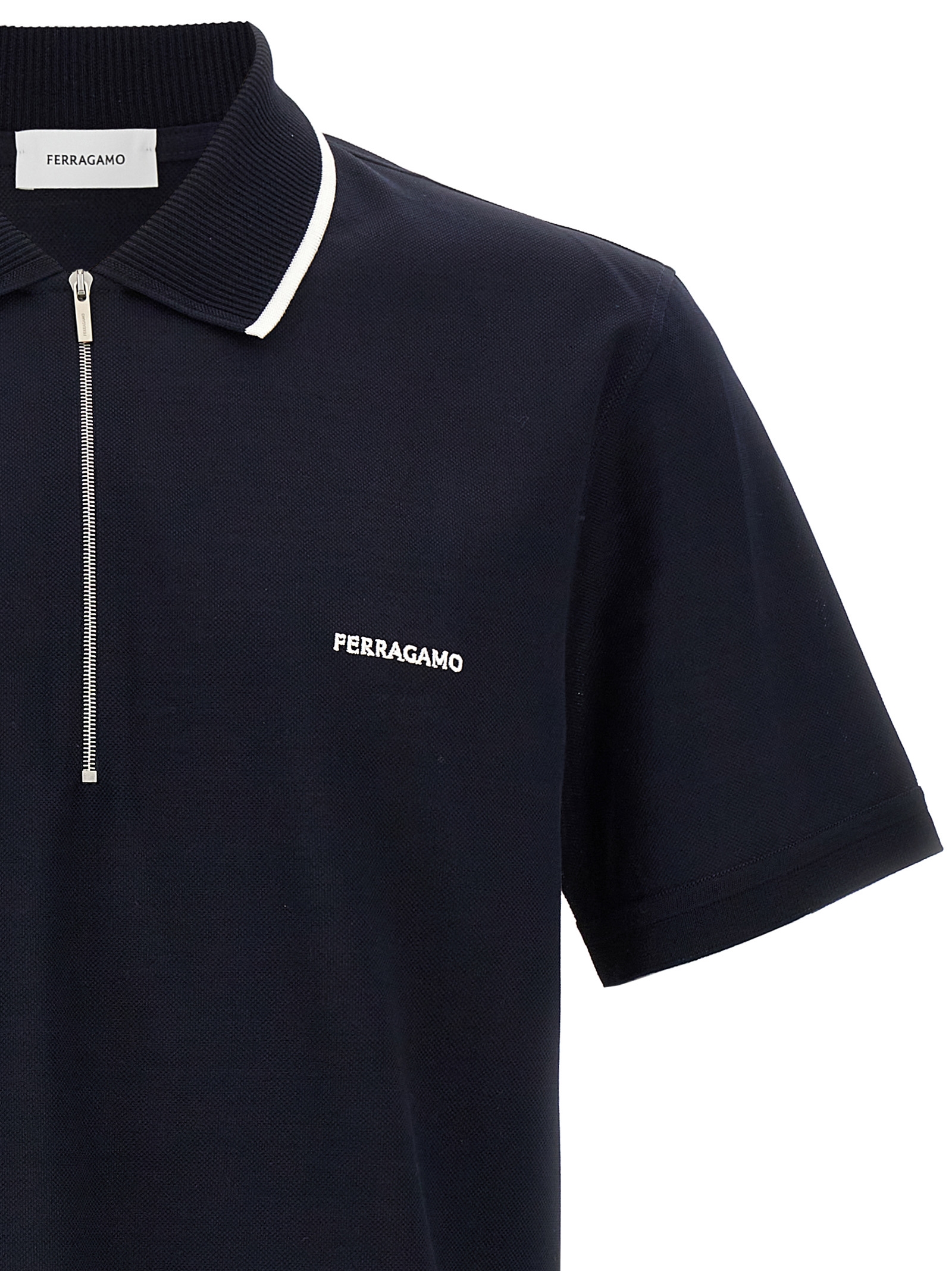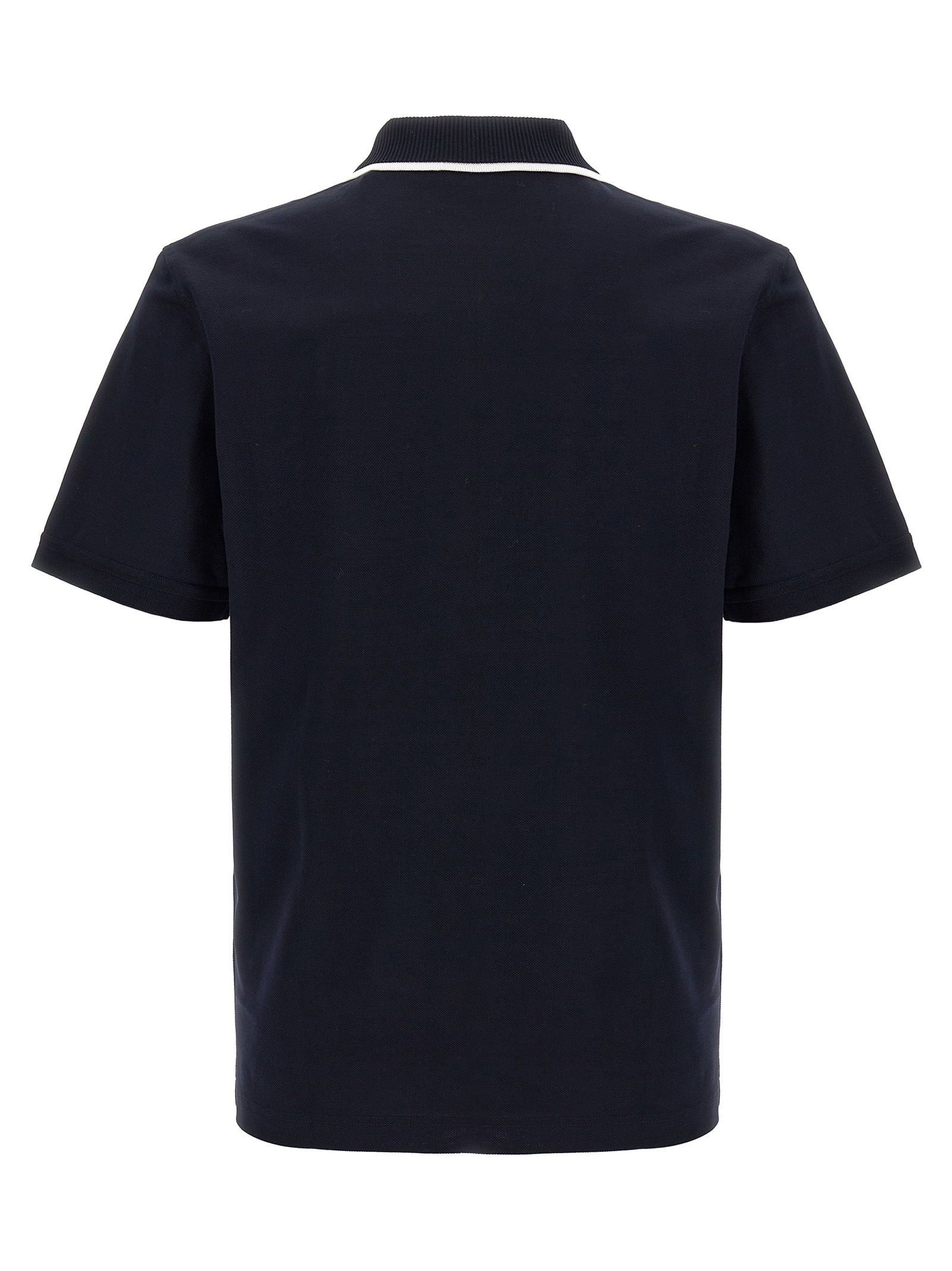 Piqué cotton polo shirt with contrast details, front logo embroidery, half-zip, ribbed collar and short sleeves.