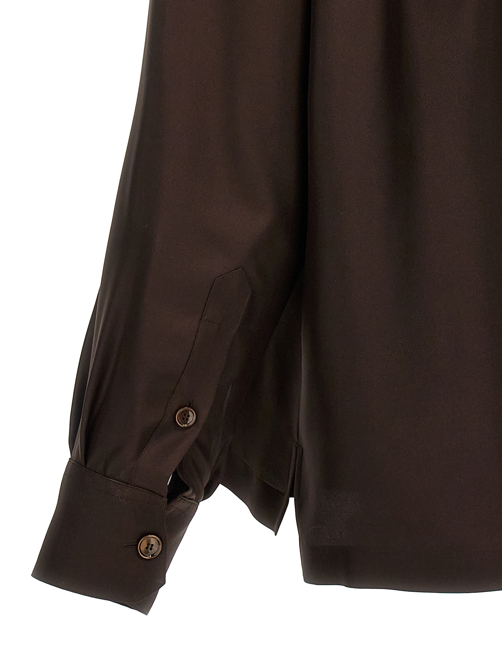 Silk twill shirt, front pocket with front logo embroidery, button closure, long cuffed sleeves.