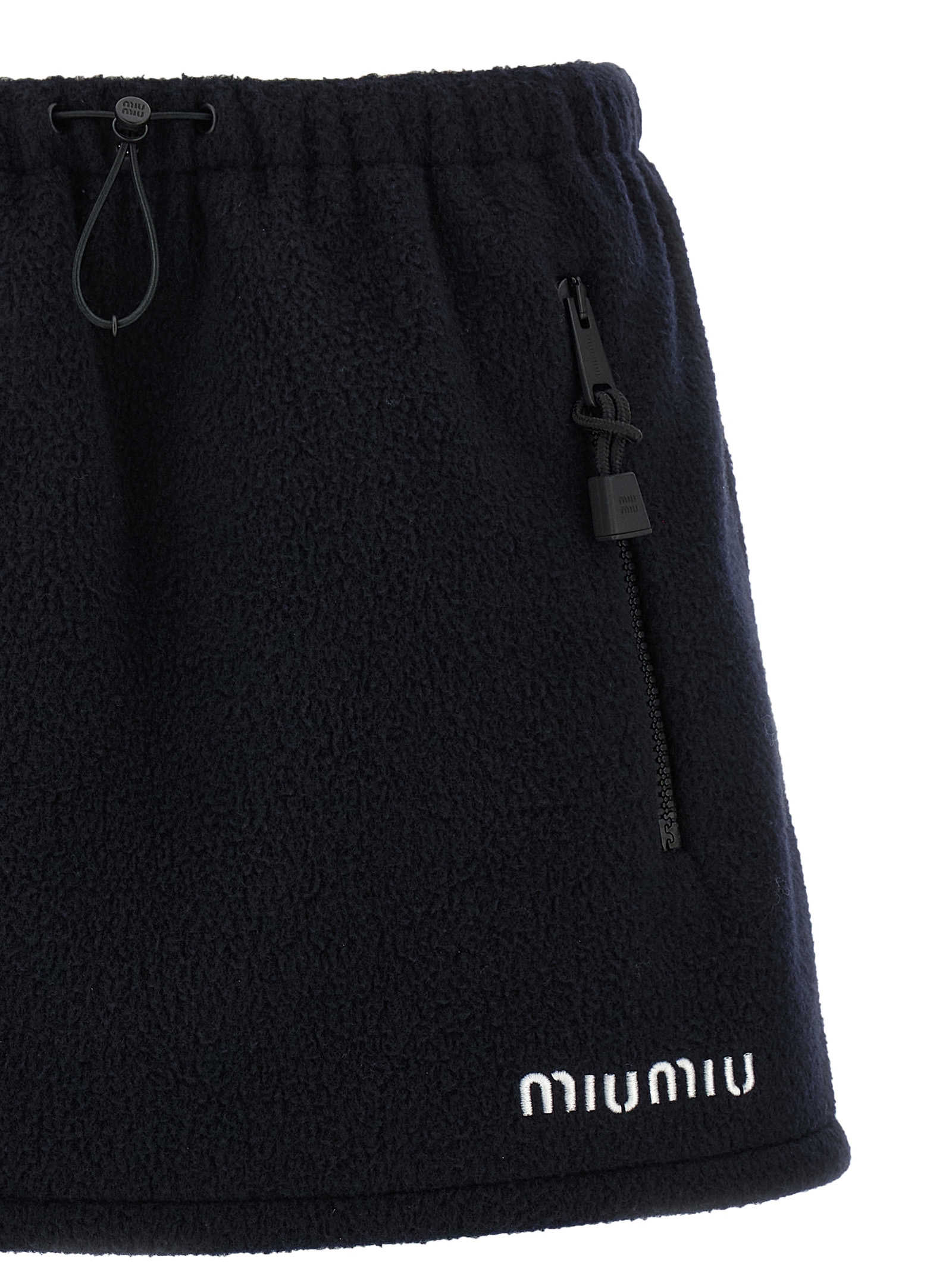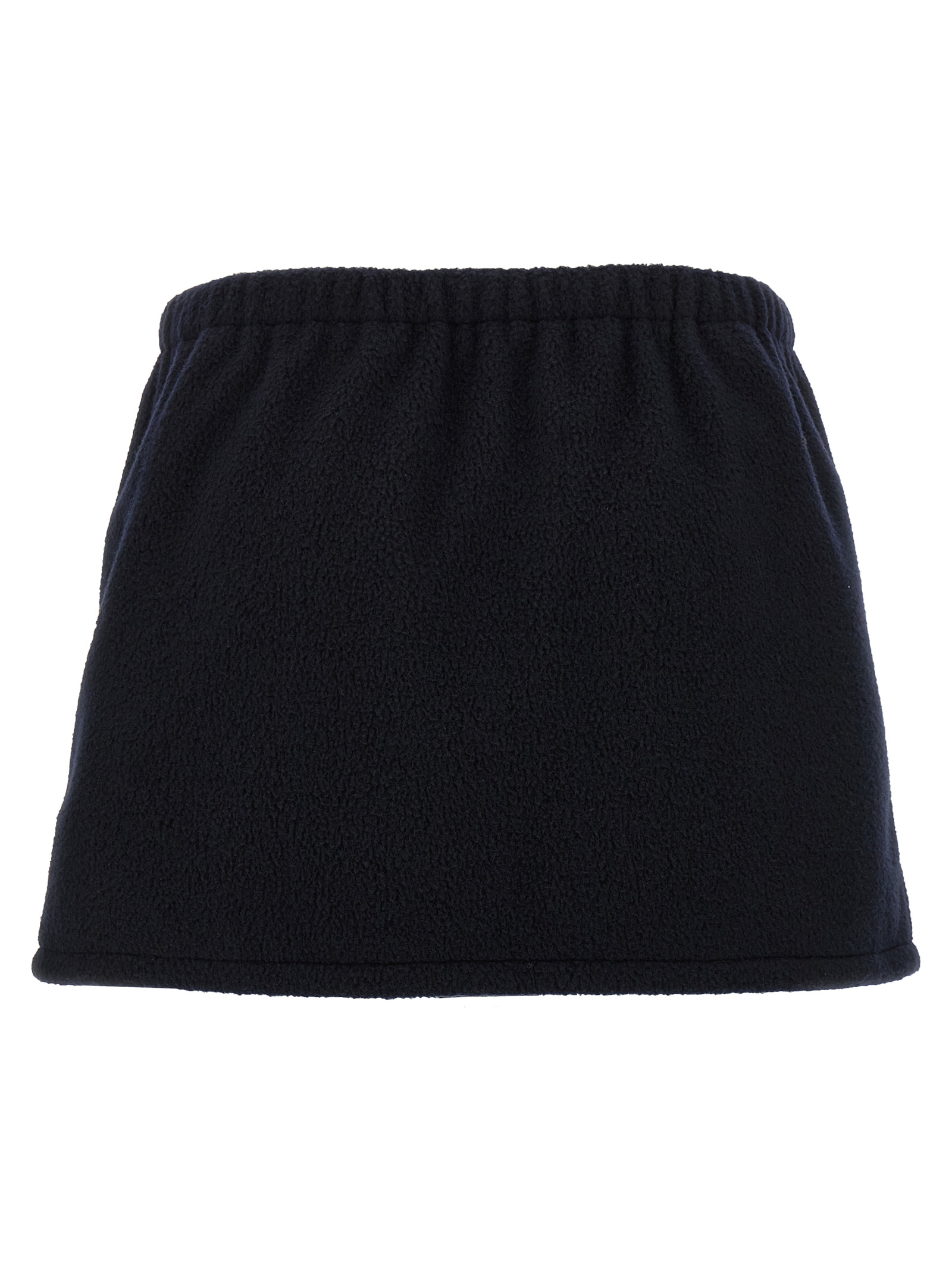 Fleece mini skirt, front logo embroidery, adjustable drawstring elastic at the waist, pockets.