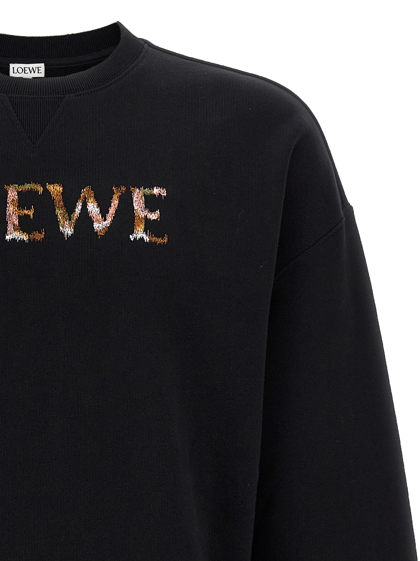 Loopback cotton sweatshirt of medium weight, logo embroidery in different yarns on the front, crew neck, long sleeves with cuffs and dropped shoulder.