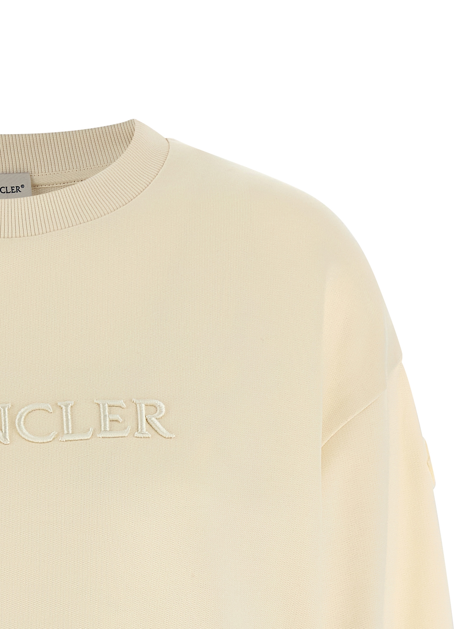 Brushed cotton sweatshirt with tone-on-tone logo embroidery on the front, crew neck, long cuffed sleeves, dropped shoulders and felt logo patch appliqué.