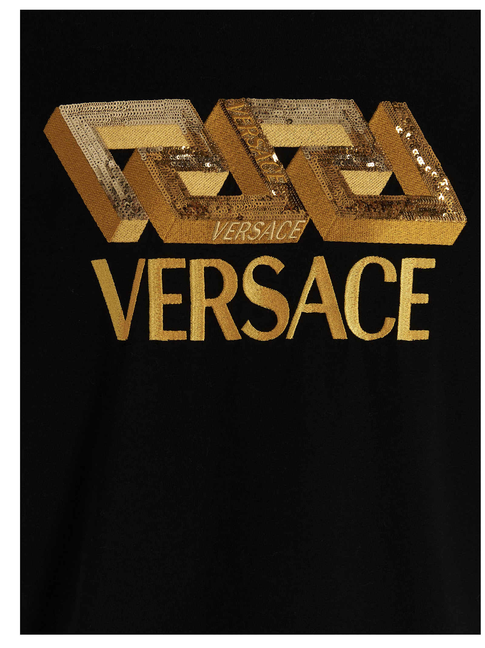 Logo and sequin embroidery, cotton crewneck t-shirt with short sleeves.