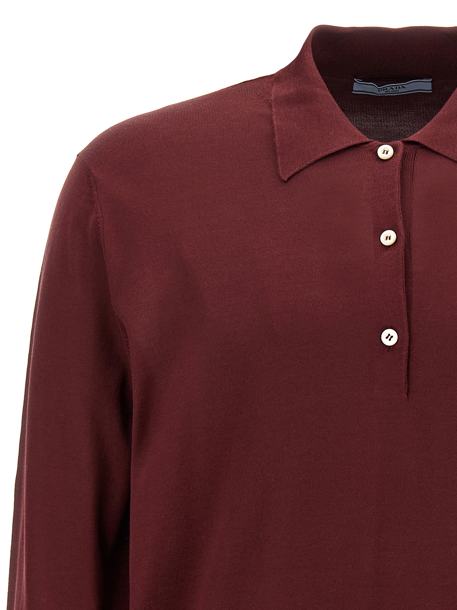 Silk polo shirt with front logo intarsia and long cuffed sleeves.
