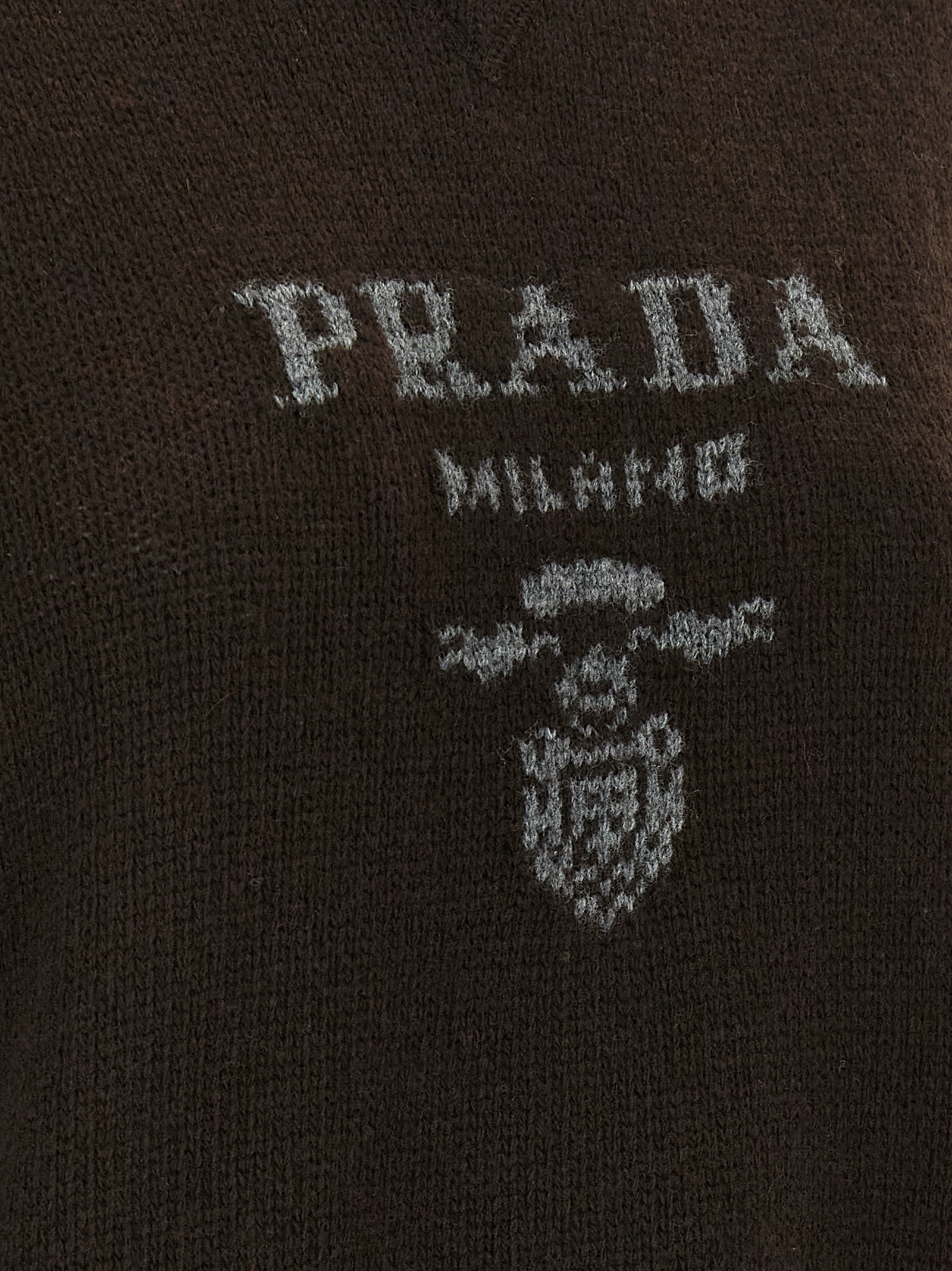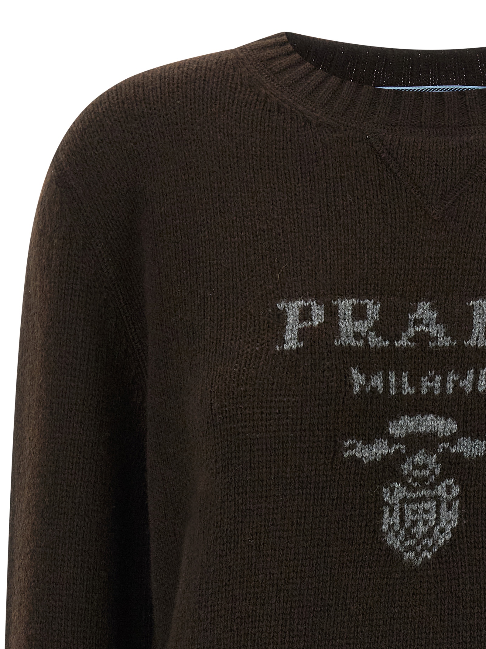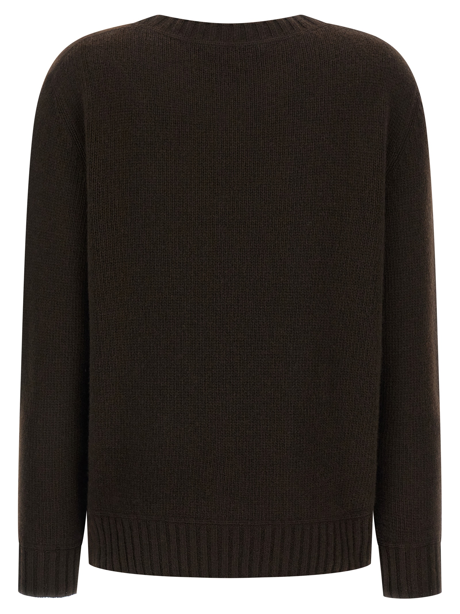 Wool and cashmere sweater with front intarsia logo, crew neck, long raglan sleeves with cuffs and dropped shoulder.