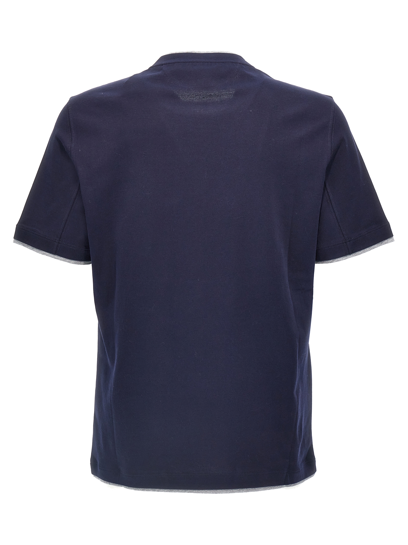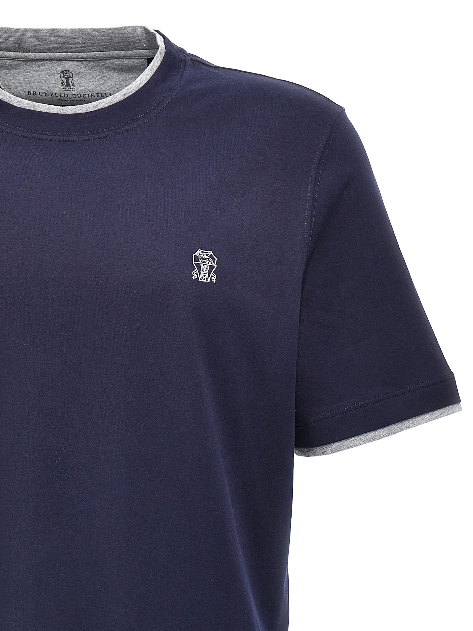 Cotton T-shirt with layered effect details, front logo embroidery, crew neck, short sleeves.