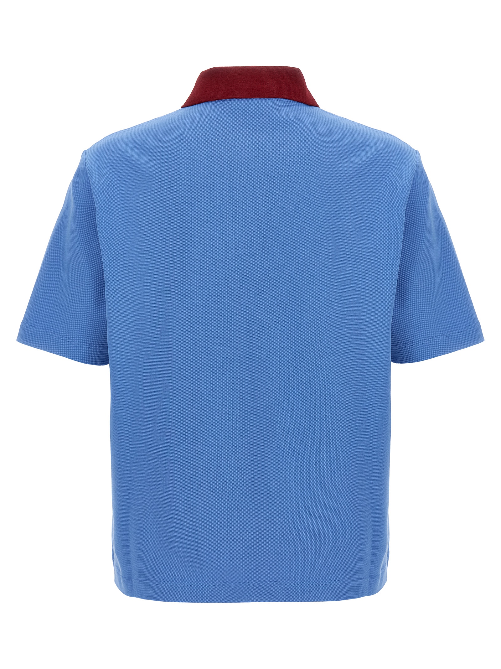 Piqué cotton polo shirt with contrast details, front logo patch, collar and buttons, short sleeves, side slits.