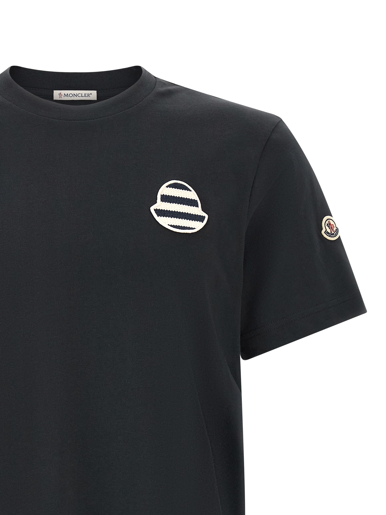 Cotton T-shirt, with embroidered logo patch on the front, crewneck, short sleeves with felt logo patch.