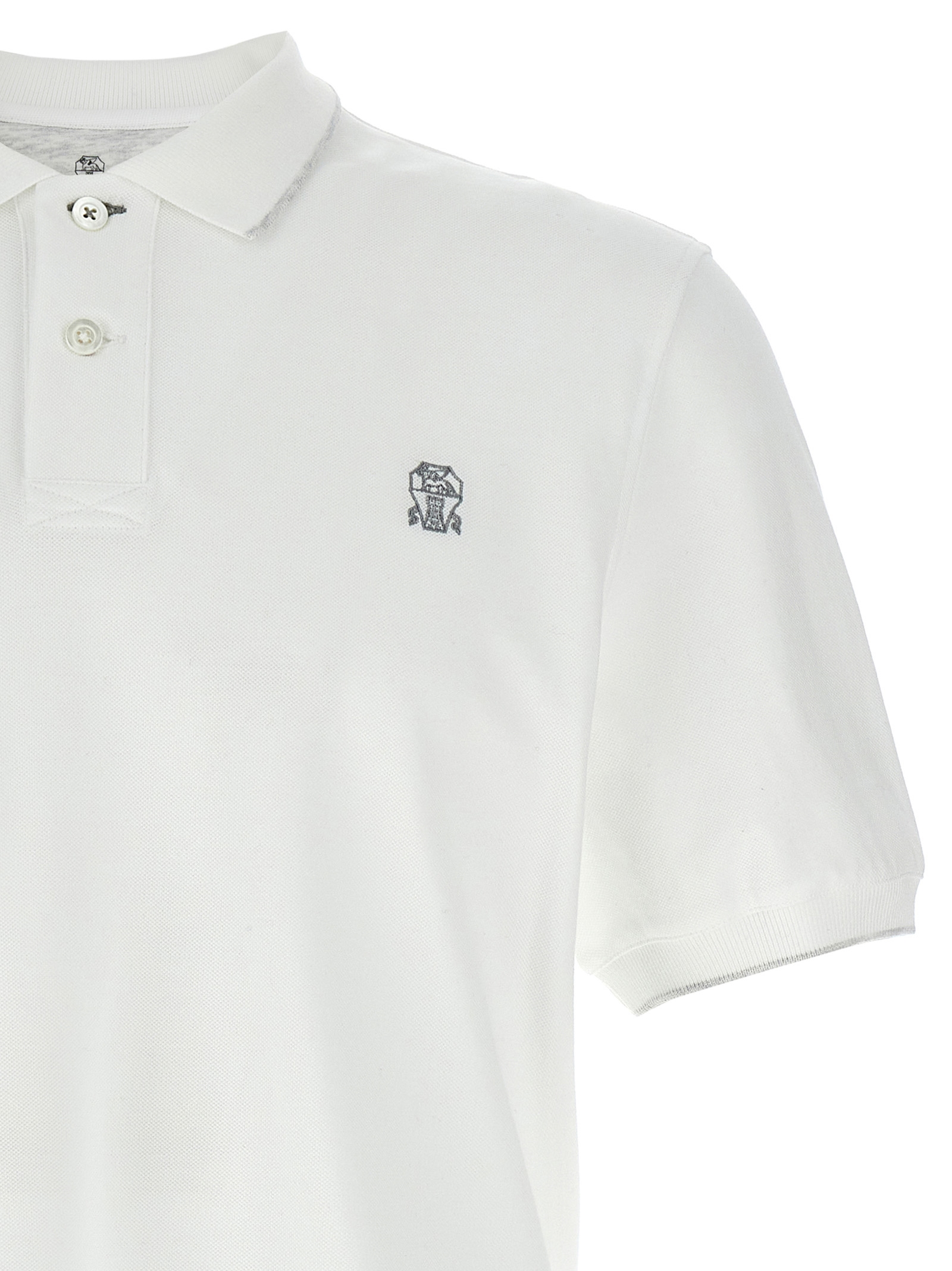 Piqué cotton polo shirt with contrast piping, front logo embroidery, collar and buttons, short sleeves, side splits.