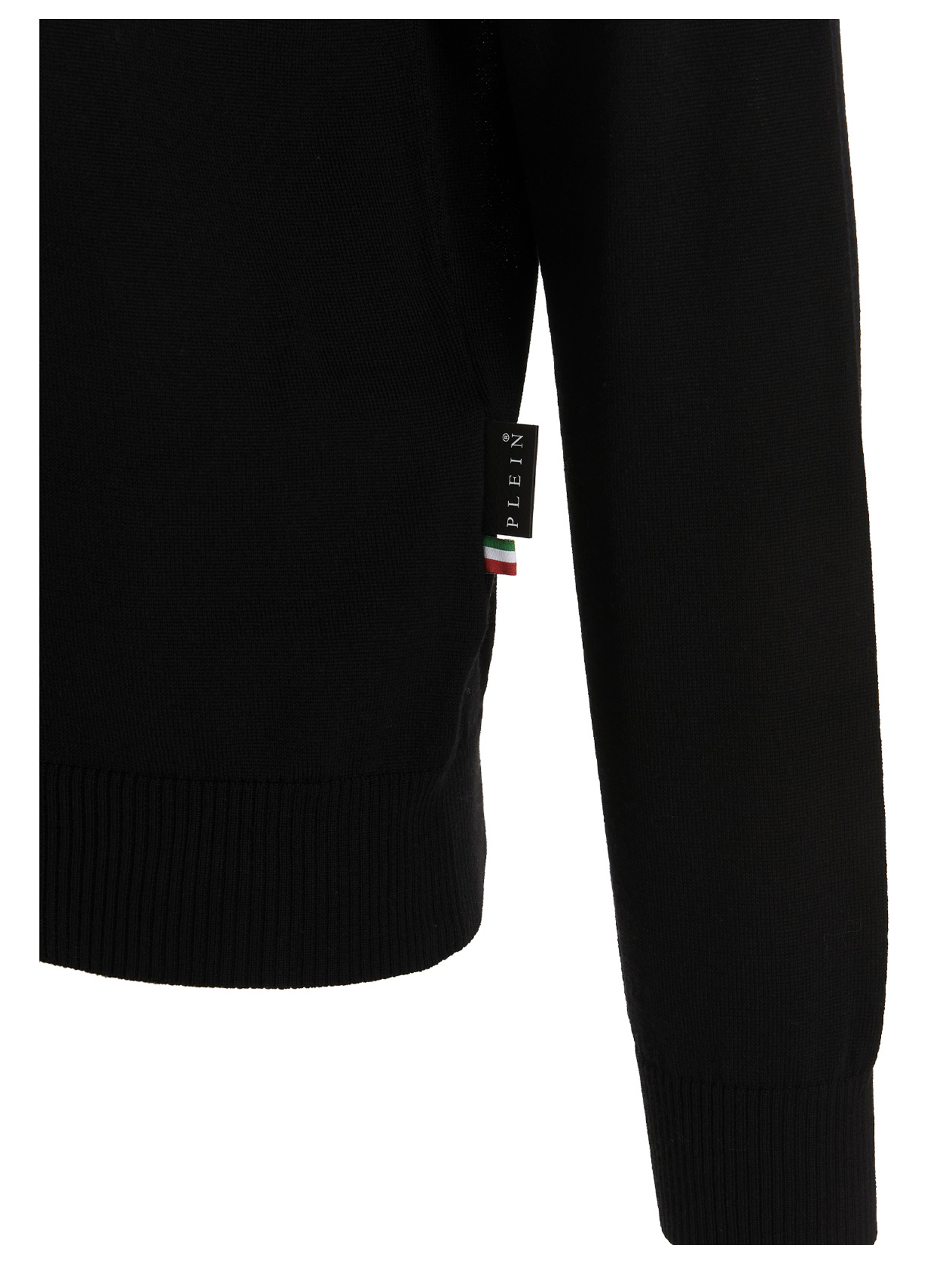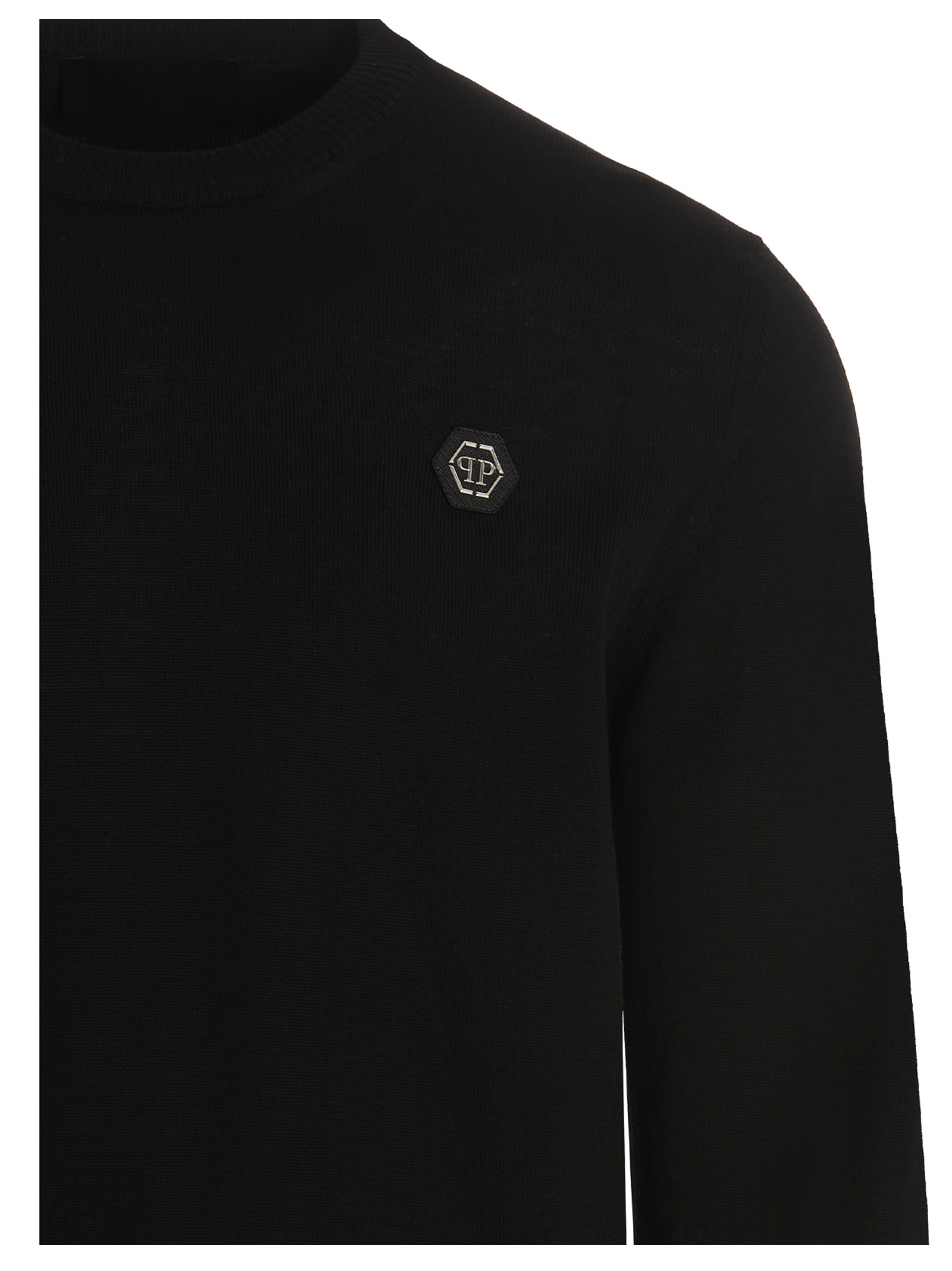 Merino wool crewneck sweater, featuring a logo plaque on the chest.