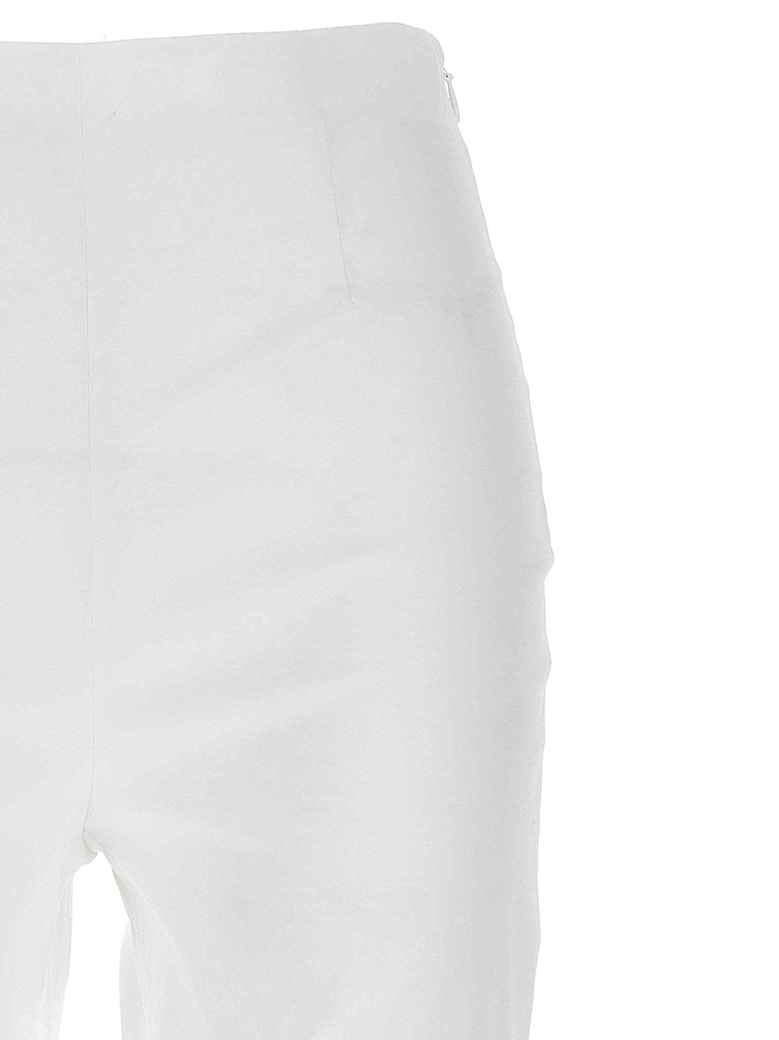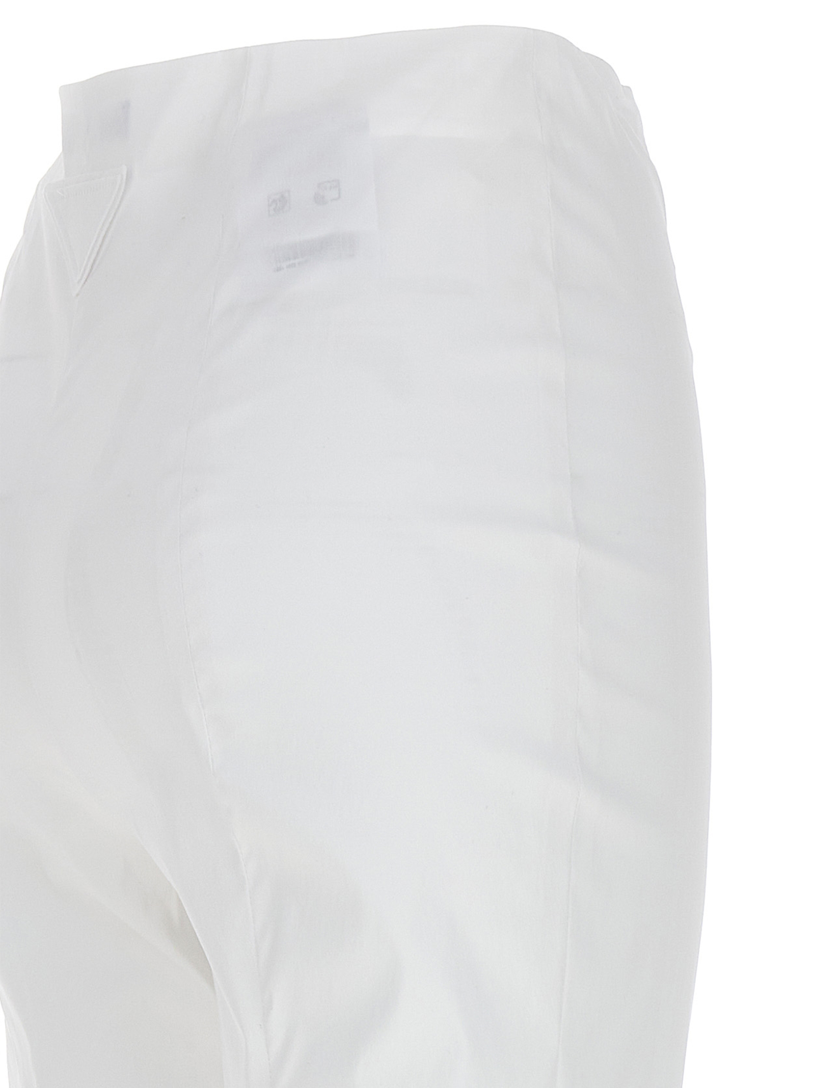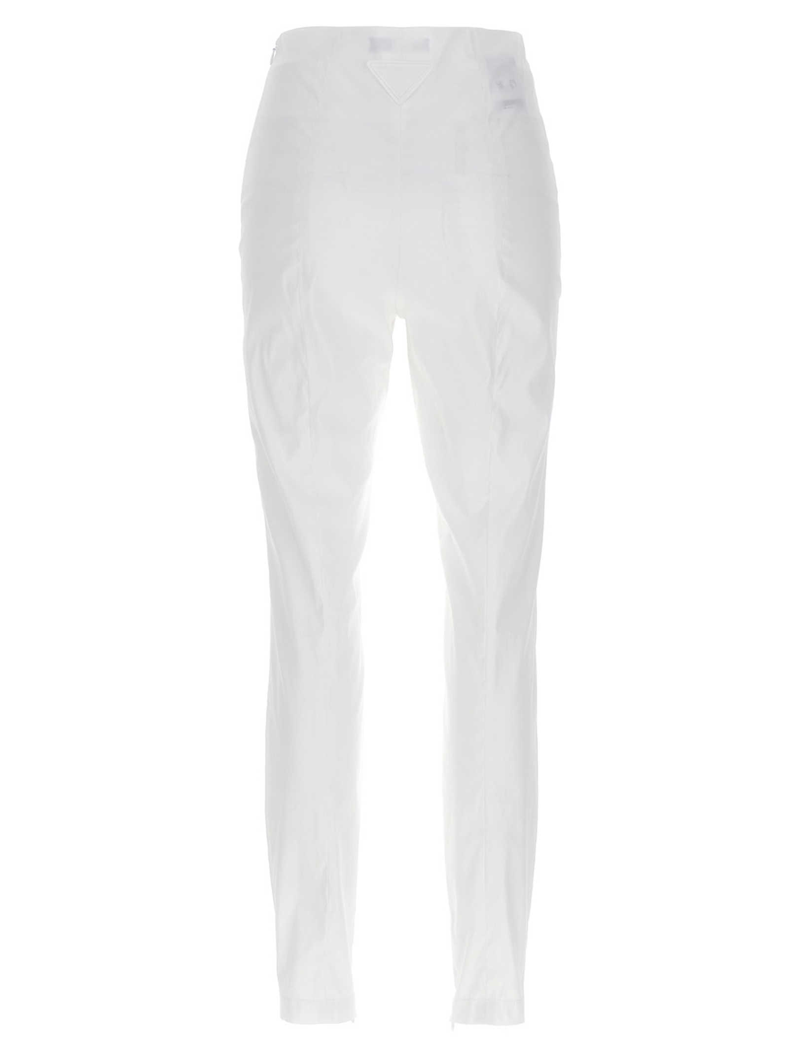 Stretch cotton blend poplin pants with logo at the back, side zip closure and a zip detail on the leg bottoms.