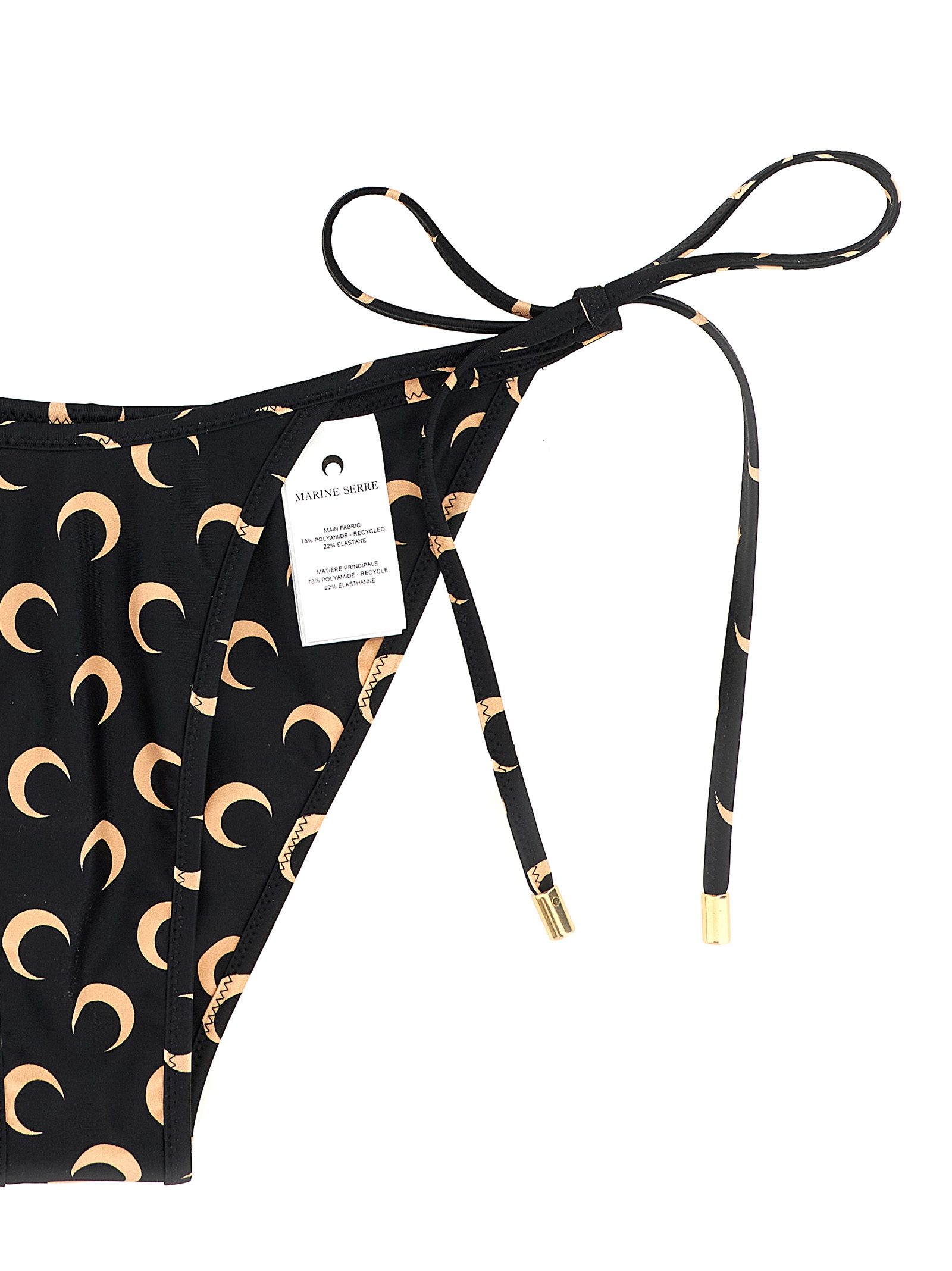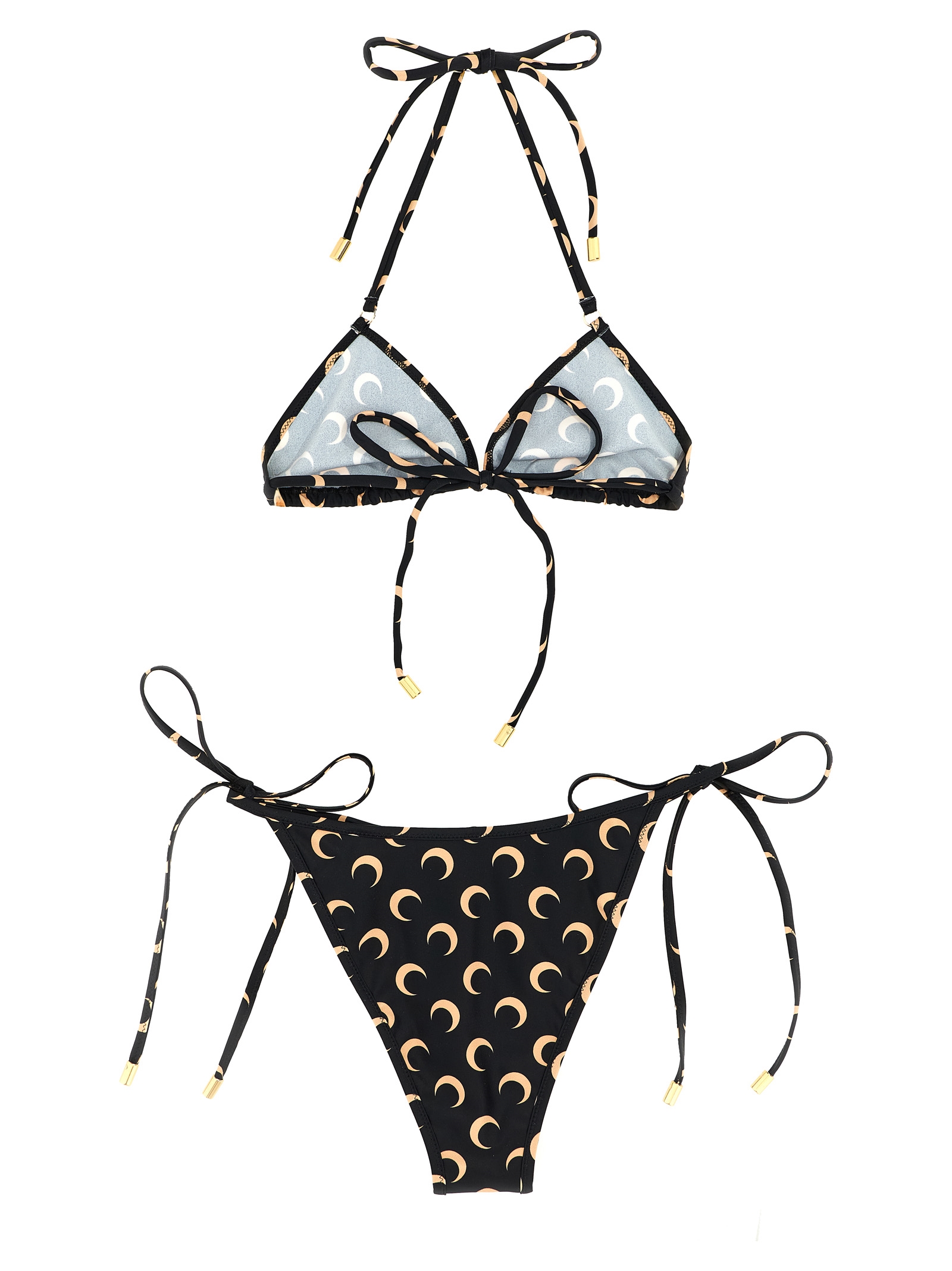 Bikini in stretch fabric with all-over logo print, triangle top with lacing, briefs with lacing on the sides.