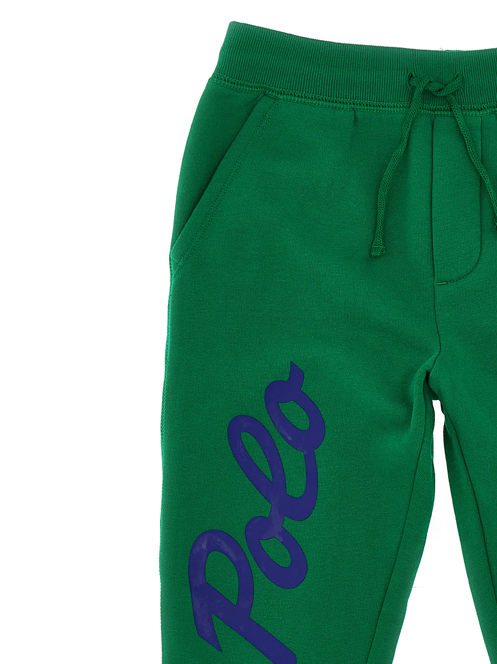 JULIAN KIDS Cotton blend joggers with logo print, a drawstring and elastic at the waist, pockets, and elastic leg bottoms.