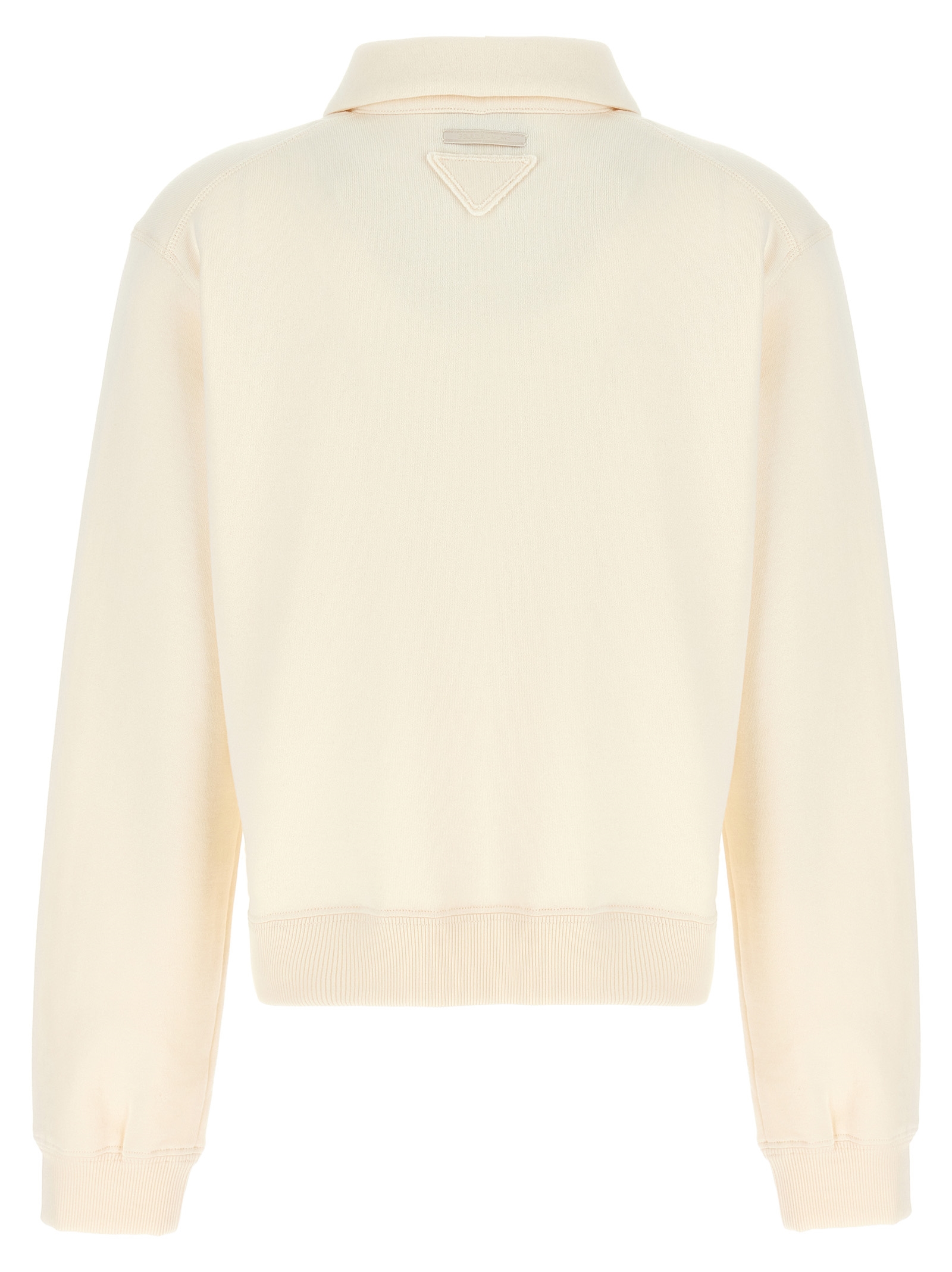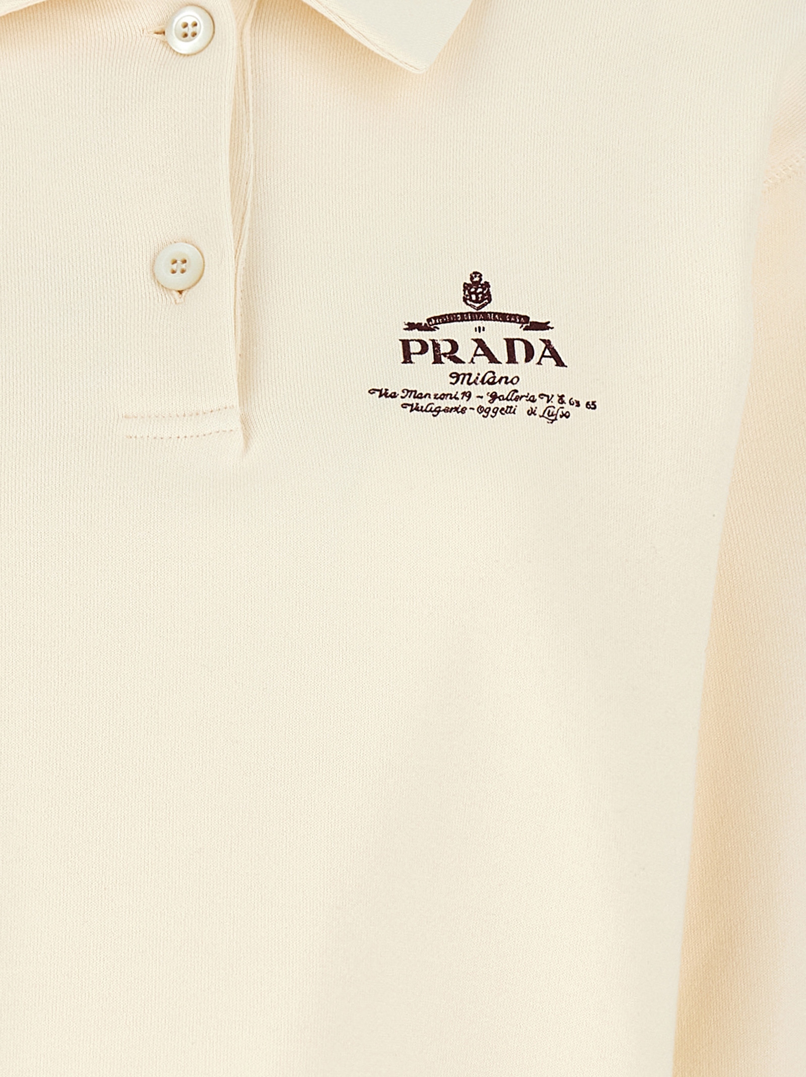 Cotton polo shirt with front logo print and long cuffed sleeves.