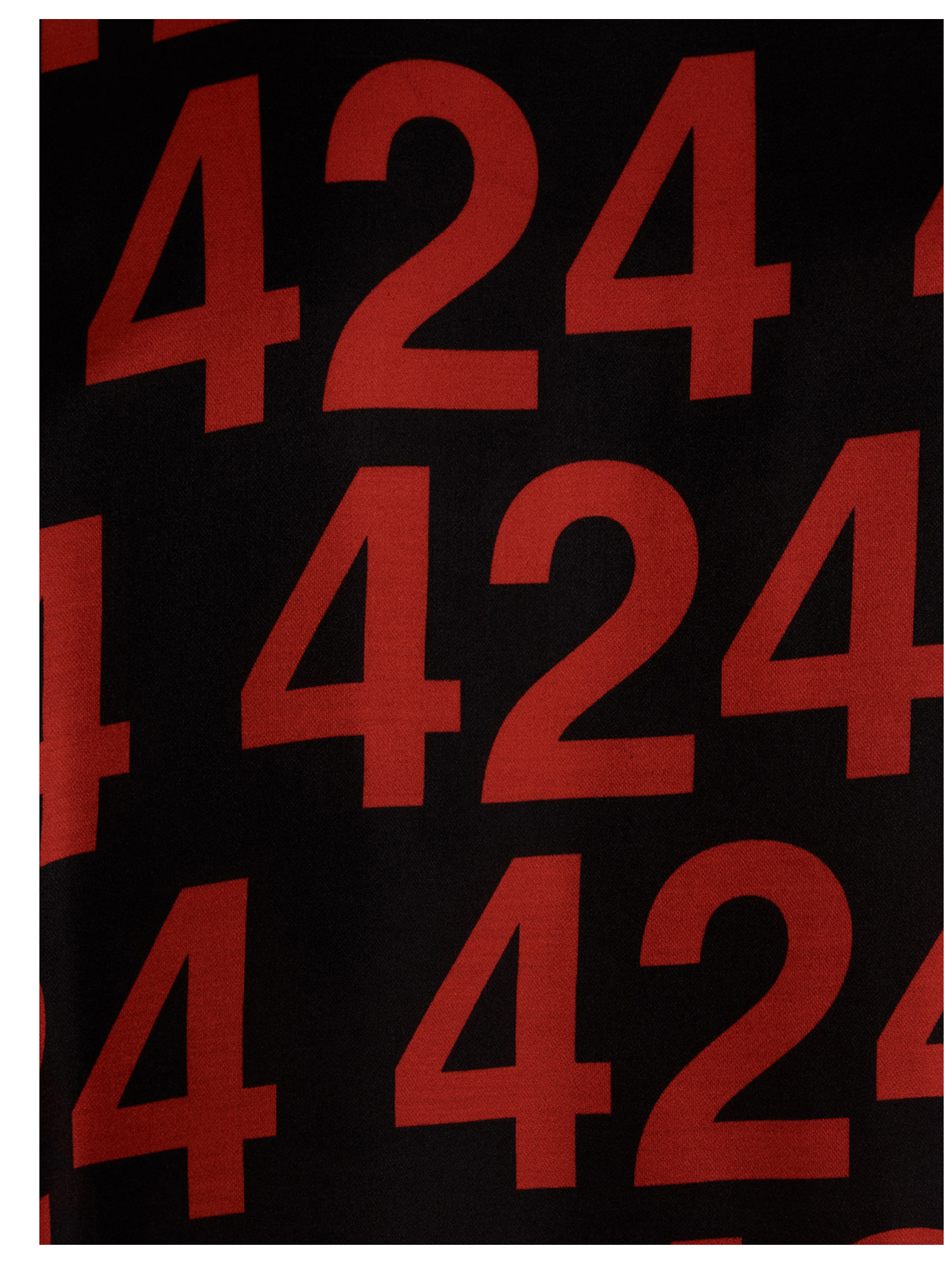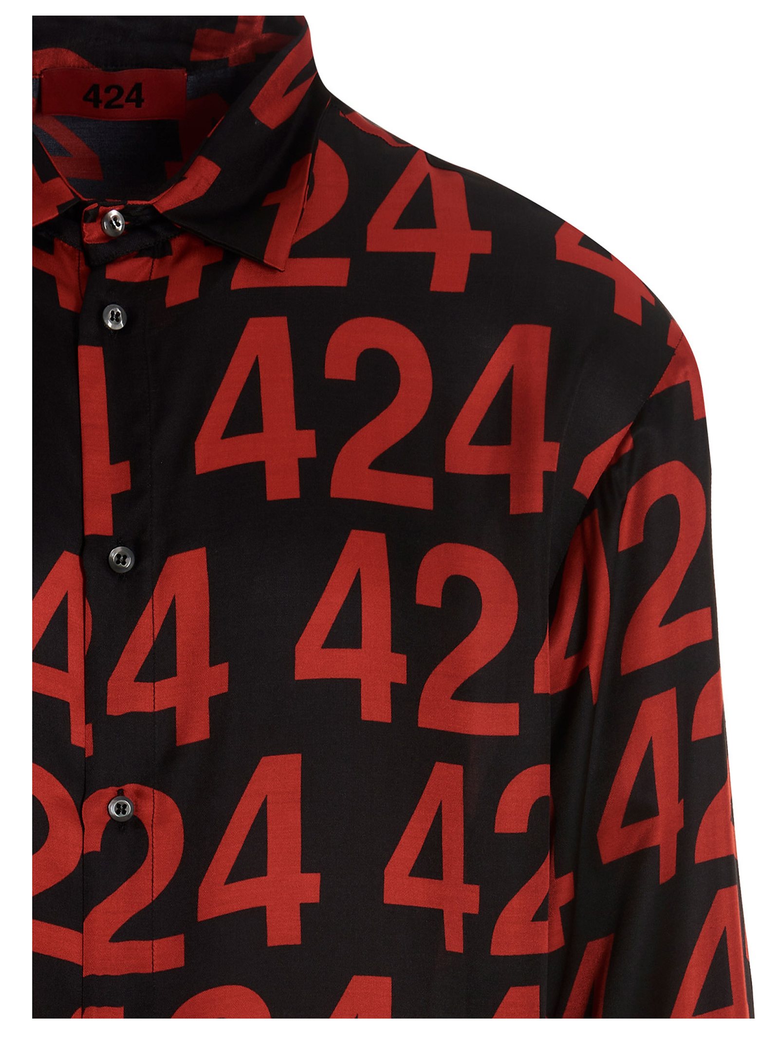 Viscose and silk blend shirt with an all over contrast logo print, collar, long sleeves and a button closure.