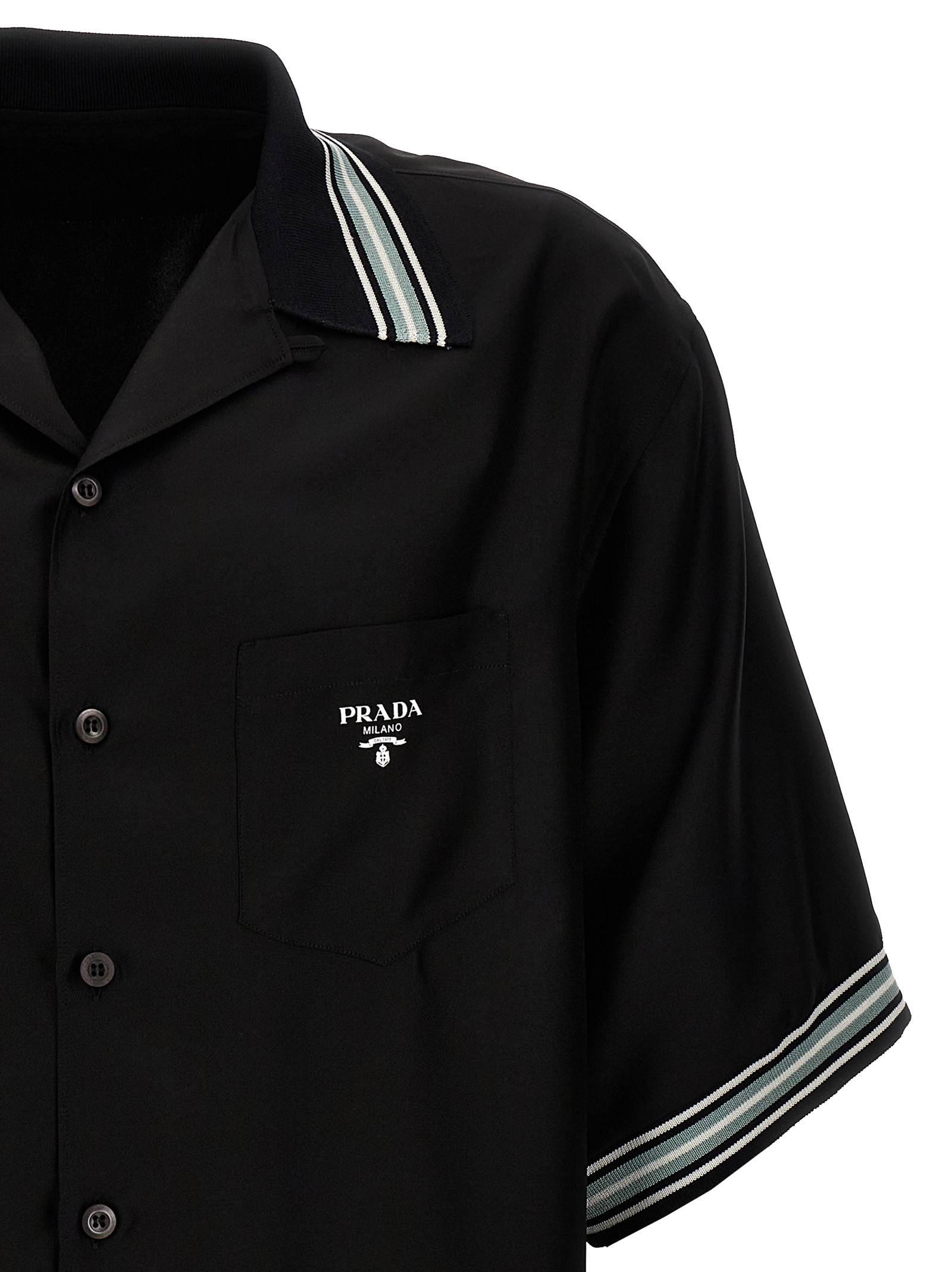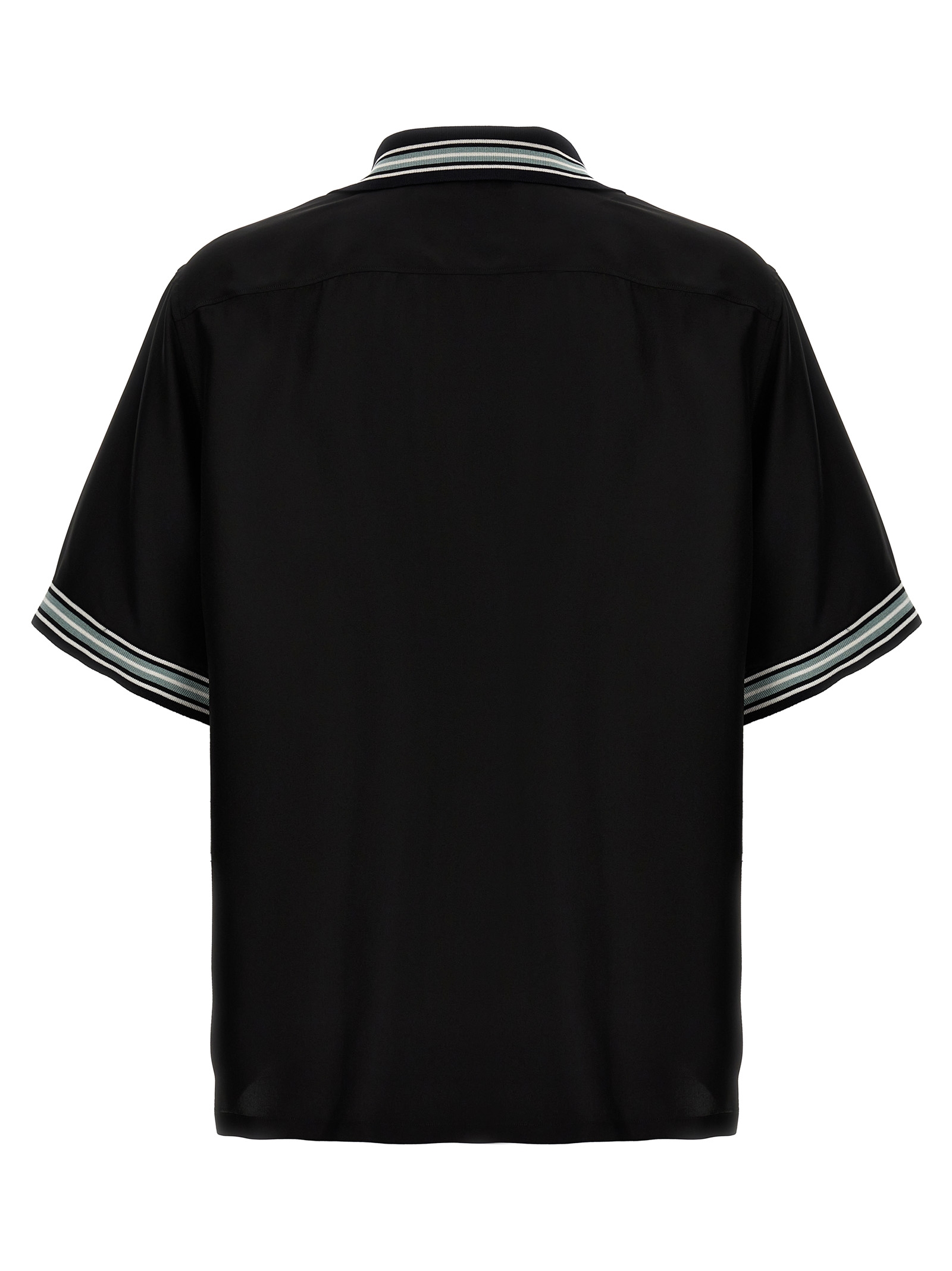 Silk shirt, pocket with logo print, button closure, short sleeves, knitted collar with contrasting detail.