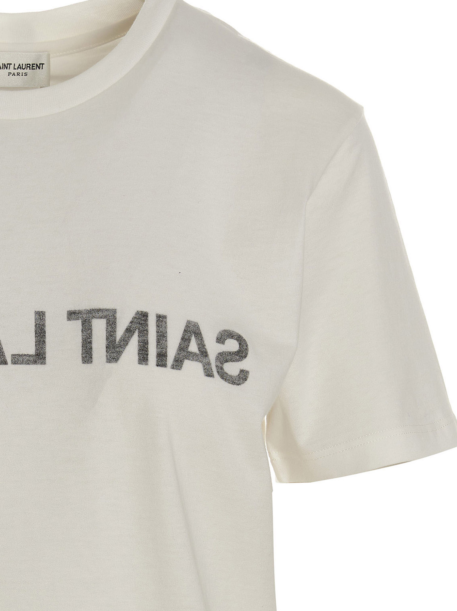Cotton, crew neck t-shirt with a front and back logo print, and short sleeves.