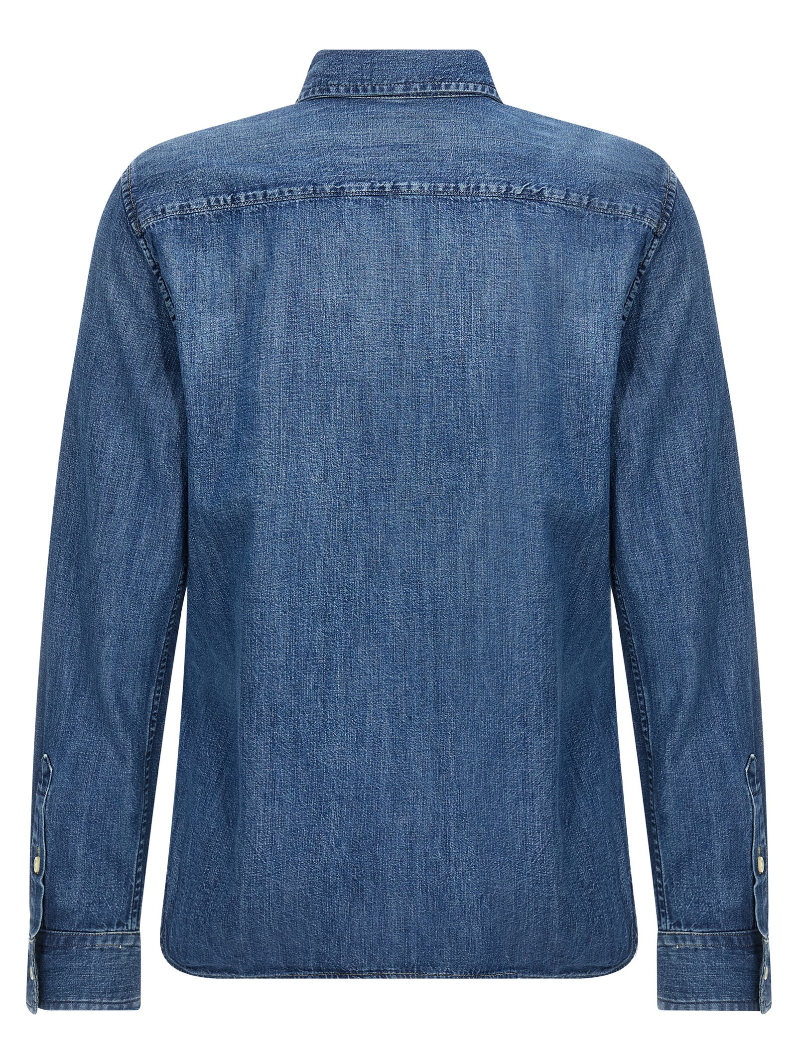 Cotton denim shirt with front logo embroidery, button closure, long cuffed sleeves.